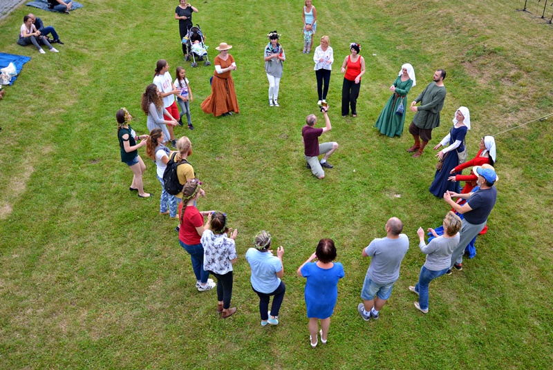 Na podzamczu przygotowano również atrakcje dla najmłodszych w postaci obozu kuglarzy – rekonstruktorów historycznych, którzy poprzez zabawę włączali uczestników aktywnie