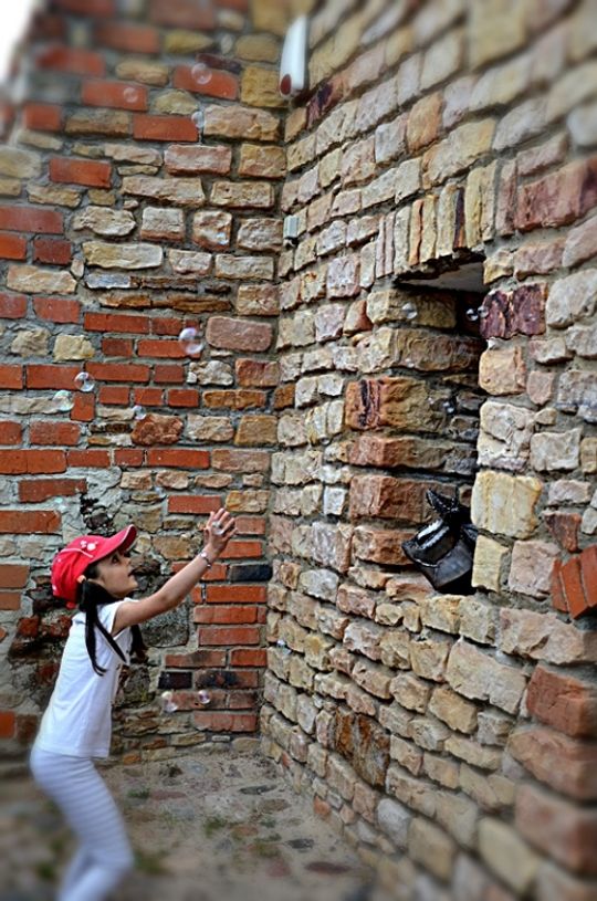 w imprezę. Między zwiedzającymi przechadzali się szczudlarz, zaczepiając i rozśmieszając publiczność.