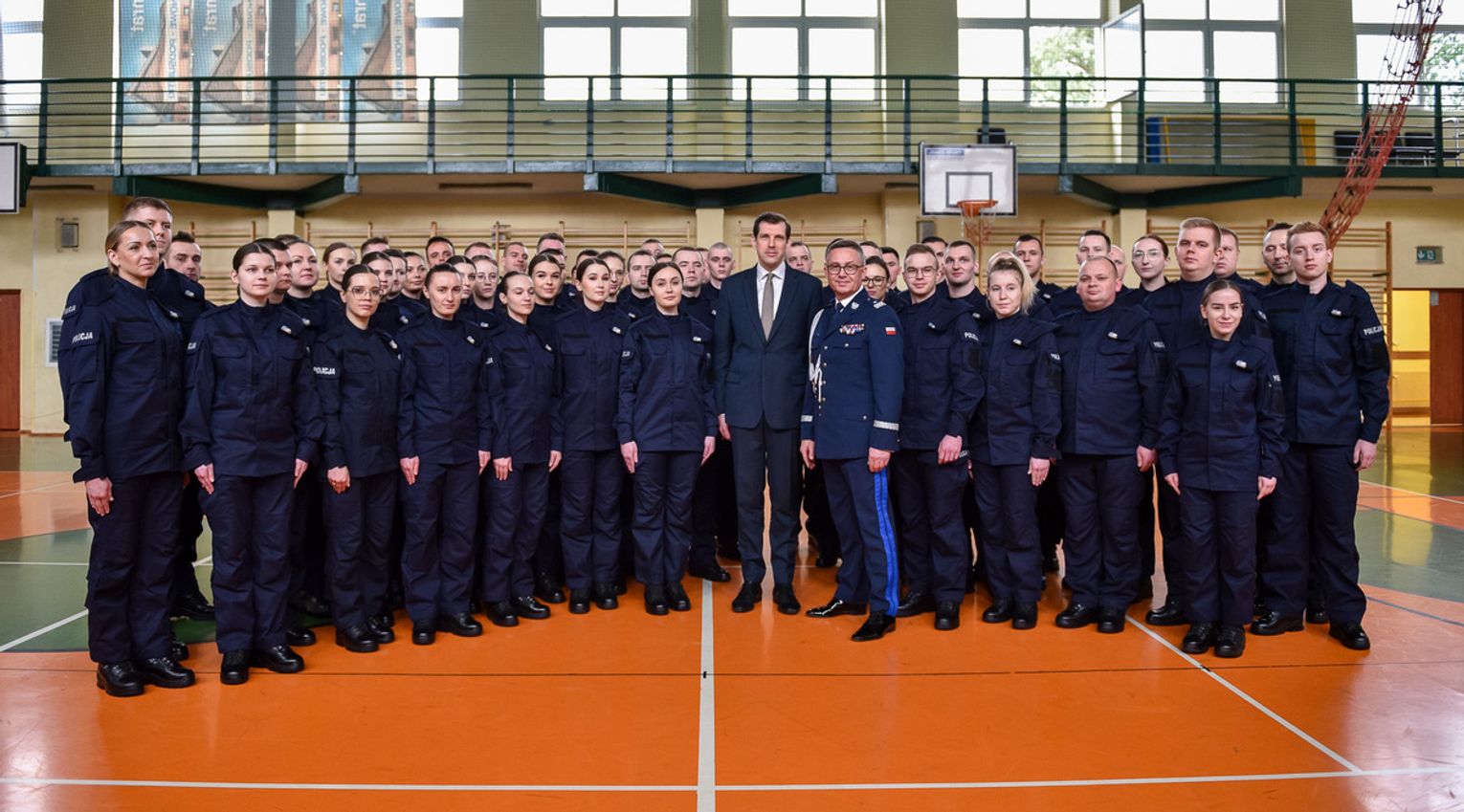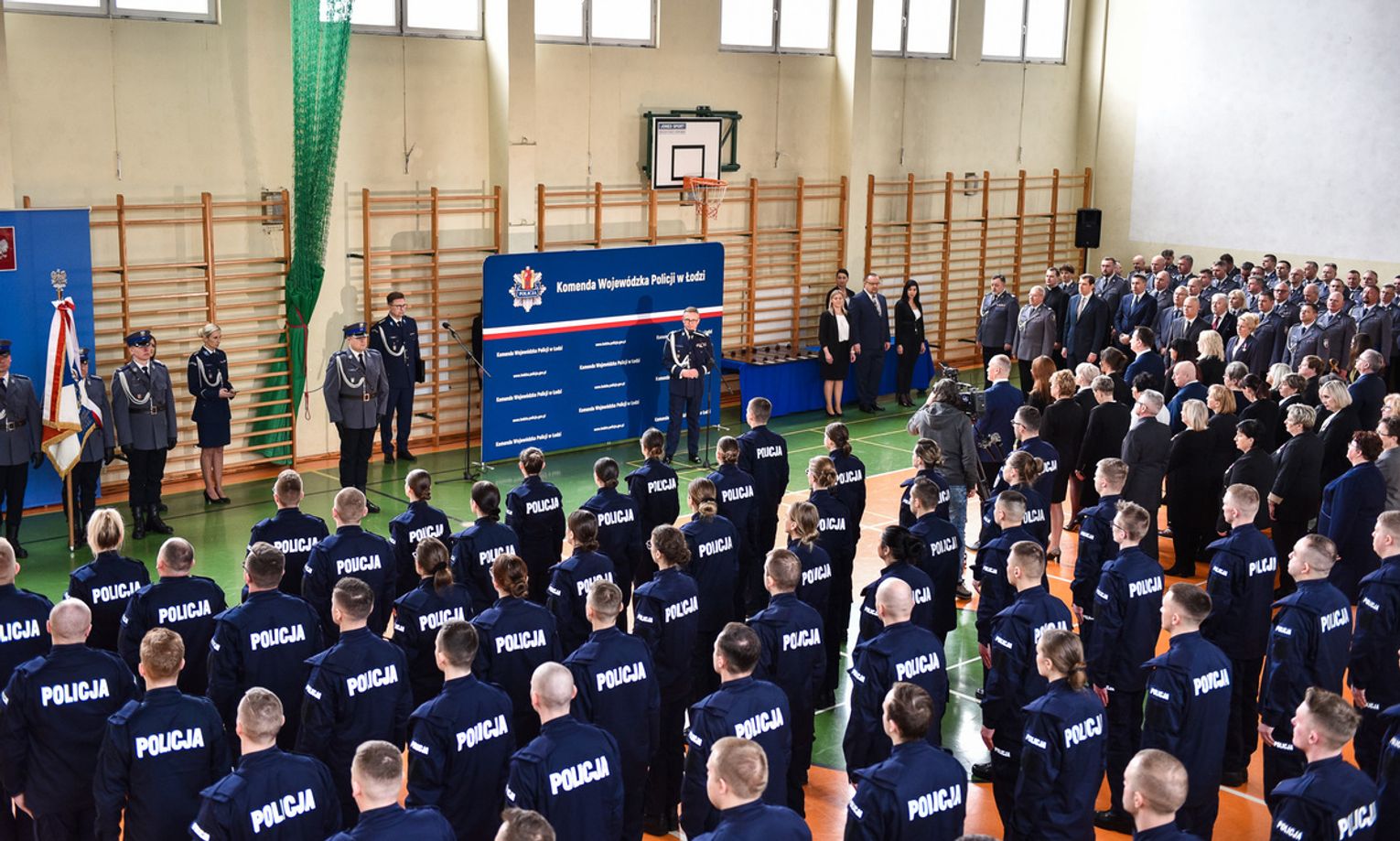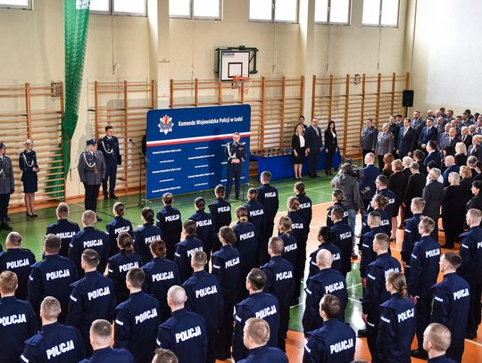 Nowo przyjętych policjantów osobiście powitał w szeregach formacji Komendant Wojewódzki Policji w Łodzi nadinsp. Sławomir Litwin. W krótkim przemówieniu komendant pogratulował im wyboru tak odpowiedzialnej służby na rzecz społeczeństwa. Podkreślił, że służba w policji to misja, która nie należy to łatwych. Komendant zaznaczył, że pomimo trudnym momentów, które na pewno będą służba ta daje satysfakcję z pomocy drugiemu człowiekowi. Głos zabrał także Wojewoda Łódzki Tobiasz Bocheński