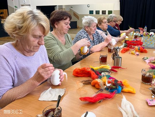 Z kolorowej wełny czesankowej (potocznie nazywanej filcem), styropianowych jajek oraz specjalnych igieł powstały przepiękne wielkanocne ozdoby, a same warsztaty z seniorkami, które poprowadziła instruktorka MCK Katarzyna Wojtaszczyk odbyły się w ciepłej i miłej atmosferze.