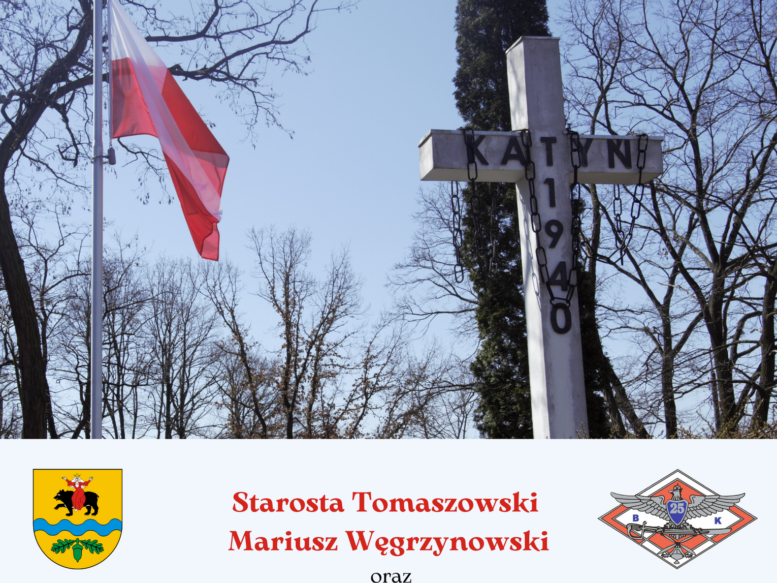 Zapraszamy na uroczystości związane z obchodami 83. Rocznicy Zbrodni Katyńskiej, które odbędą się w dniu 13 kwietnia 2023 r. (czwartek) o godz. 11:00 na Cmentarzu Wojennym przy ul. Smutnej w Tomaszowie Maz., a następnie o godz. 12:00 Msza Św. w Kościele pw. Św. Jadwigi Królowej przy ul. Warszawskiej 75/78.