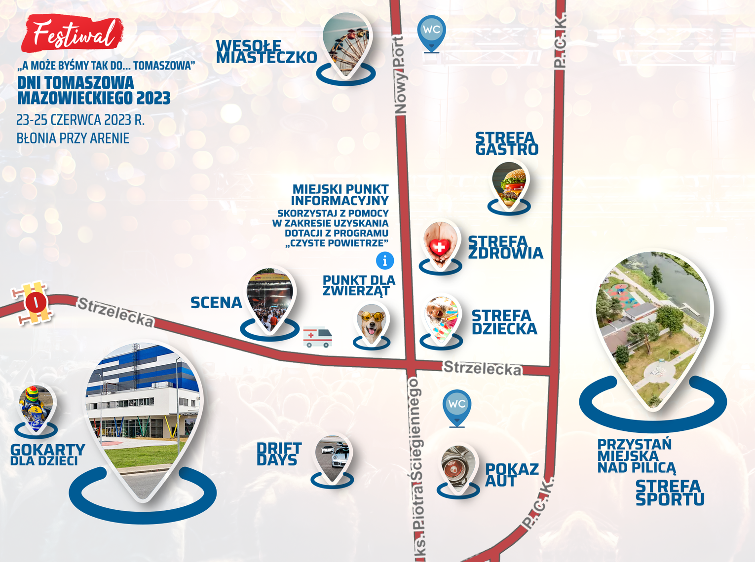 Strefa gastronomii - Tomaszowskie Błonie Food Truck Strefa rozrywki - Tomaszowskie Błonie Wesołe miasteczko „Nocna Jazda Drift Days” - boisko wrotkarskie przy Arenie Lodowej wejście od ul. Ściegiennego | ||||||