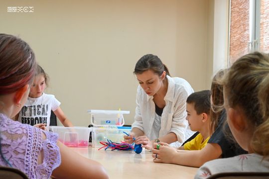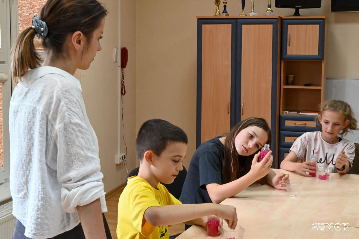 Poza tymi atrakcjami w MCK Tkacz na uczestników czekały warsztaty muzyczne, ceramiczne, taneczne i sensoryczne... Na podsumowanie turnusu wszyscy otrzymali pamiątkowe certyfikaty i upominki oraz wspólnie z instruktorami zaśpiewali półkolonijną piosenkę.
