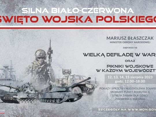 Zapraszamy do wspólnego spędzenia Święta Wojska Polskiego – pełna lista wszystkich wydarzeń KLIKNIJ na stronę MON.