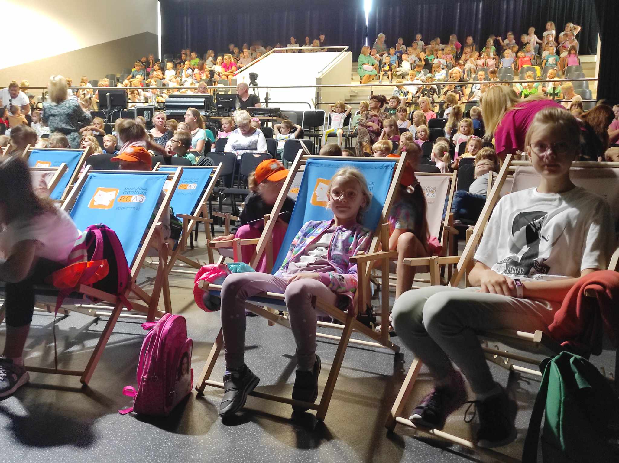 Widownia zapełniła się po brzegi. Na nasze zaproszenie odpowiedziało wielu mieszkańców powiatu tomaszowskiego. Gościliśmy również przedszkola nr 11 i 20 oraz Wyspa Szkrabów. Bajkę obejrzeli również uczestnicy „Zajęć wakacyjnych z PCAS-em”.