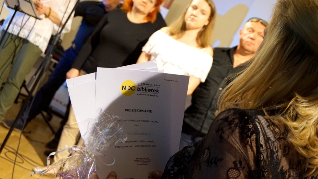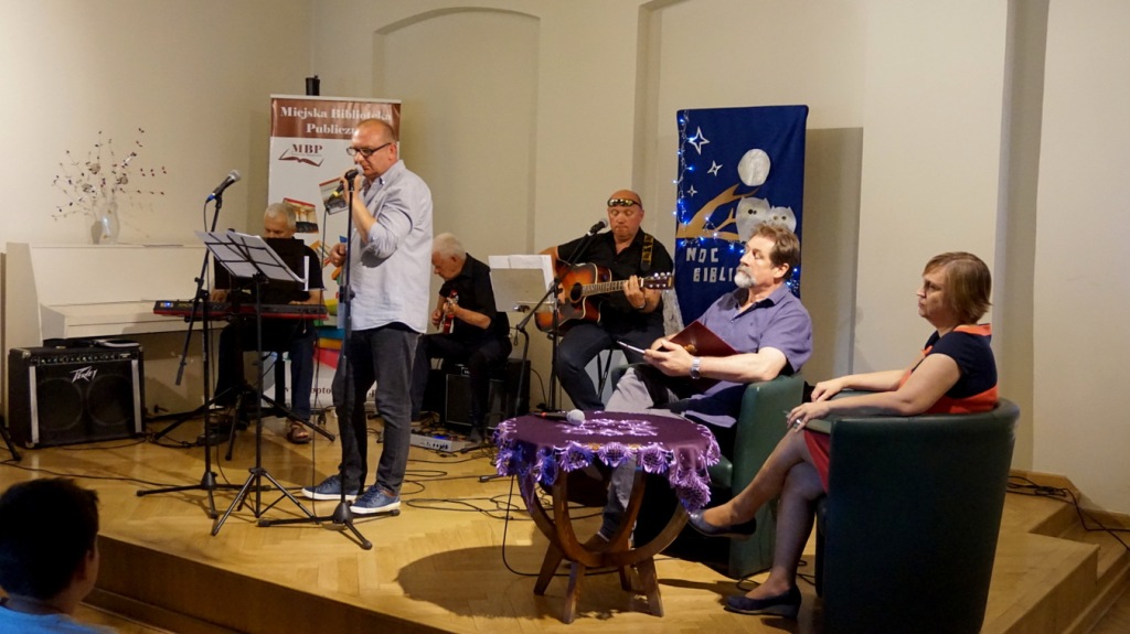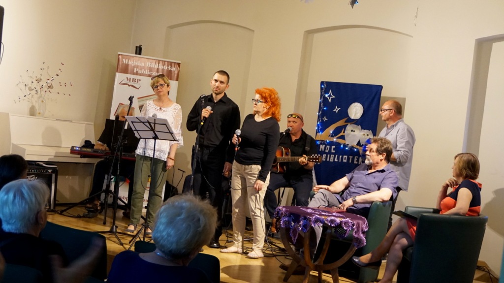Na uczestników Nocy Bibliotek czekało wiele atrakcji m.in. występ Grupy Poetycko - Muzycznej „Na Trzeźwo” ze Stowarzyszenia Abstynenckiego „Azyl”, która zaprosiła zebranych na spektakl poetycko-muzyczny pt. „Co nam w duszy gra... czyli podróż do wnętrza siebie” w reżyserii Janusza Dziubałtowskiego - twórcy i założyciela „Młodzieżowego Teatru Do Spraw Ciężkich”.