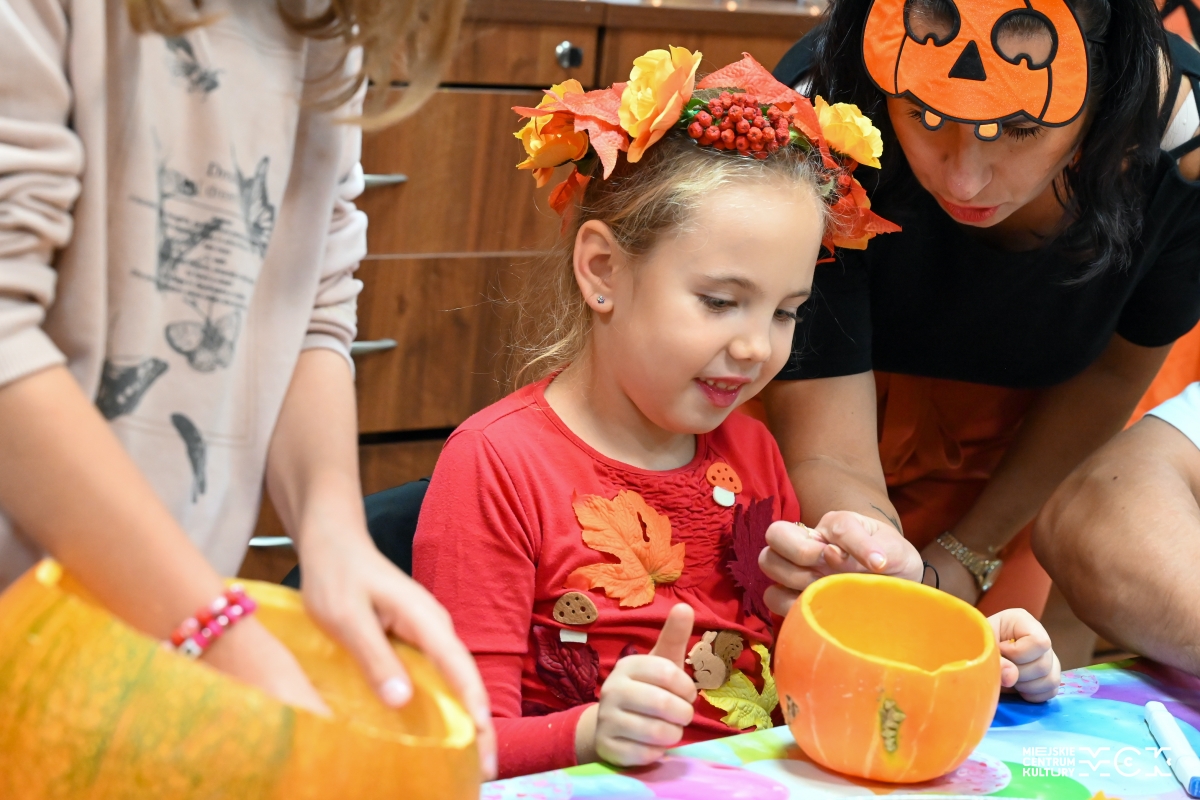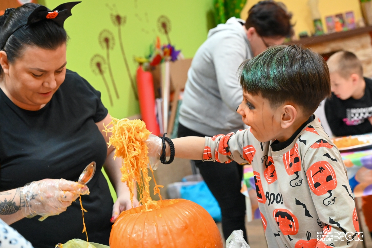 Po wykonaniu lampionów z dyni, dzieci wraz z rodzicami brali udział w zabawach taneczno-ruchowych, poznali właściwości tytułowego warzywa, przepis na zdrową, jesienną sałatkę, a także zmierzyli się w dyniowej zabawie dzieci kontra rodzice. Był to zdecydowanie miło spędzony czas. „Dyniowe szaleństwo” odbędzie się również w MCK Za Pilicą (ul. Gminna 37/39) w środę, 8.11 o godz. 17.30. Są jeszcze wolne miejsca, zapraszamy!