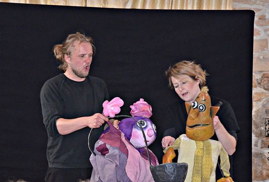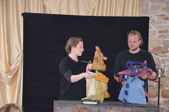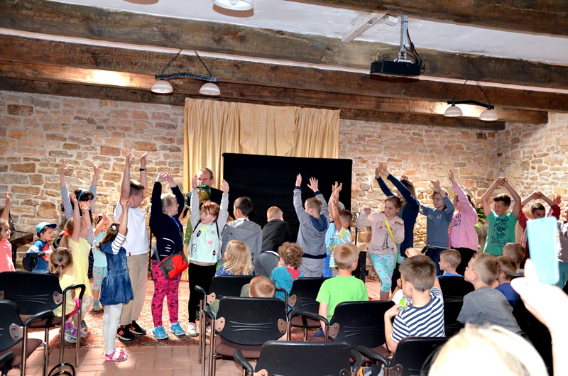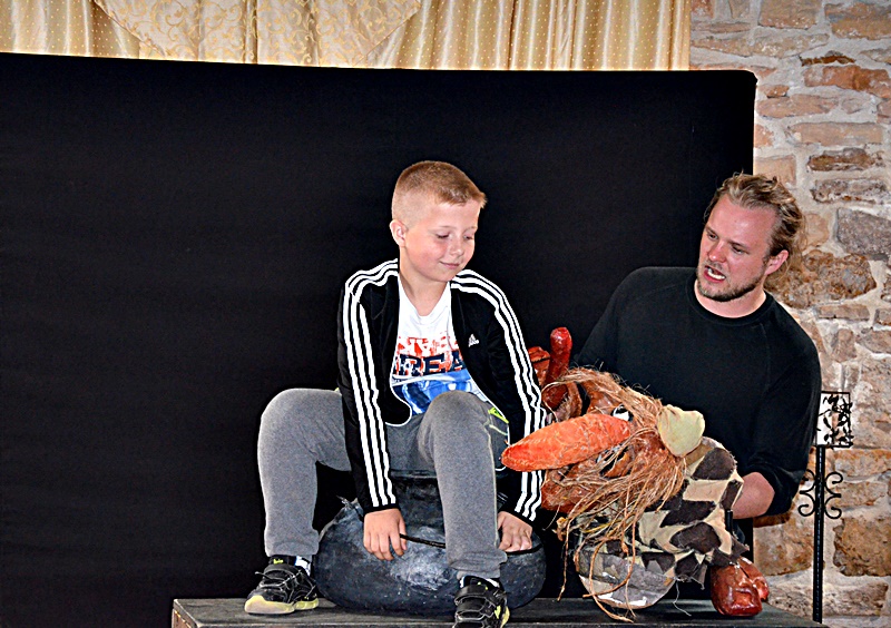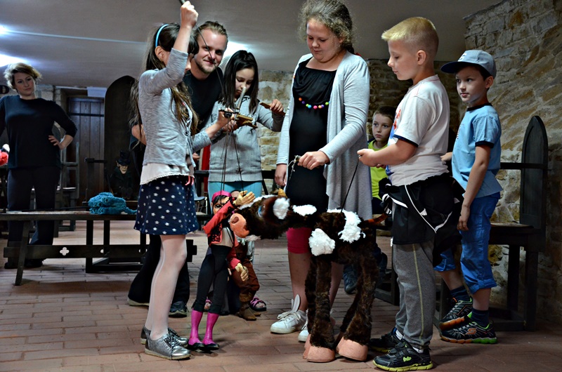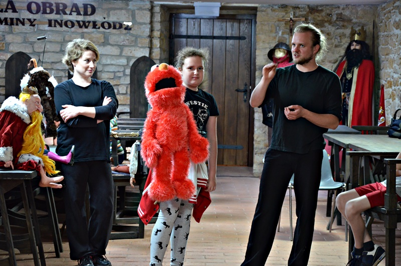 Aktorzy poprowadzili warsztaty dla uczniów szkoły podstawowej, podczas których dzieciaki uczyły się dykcji i obsługi lalek, m.in. marionetek, kukiełek, mapetów. Dowiedziały się również, jak ciężko wcielić się w rolę takiej laleczki i przedstawić scenkę z jej użyciem, czego mogły doświadczyć samodzielnie.