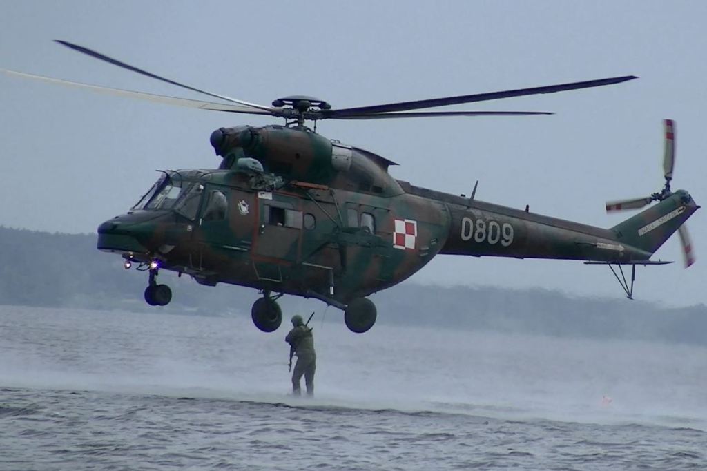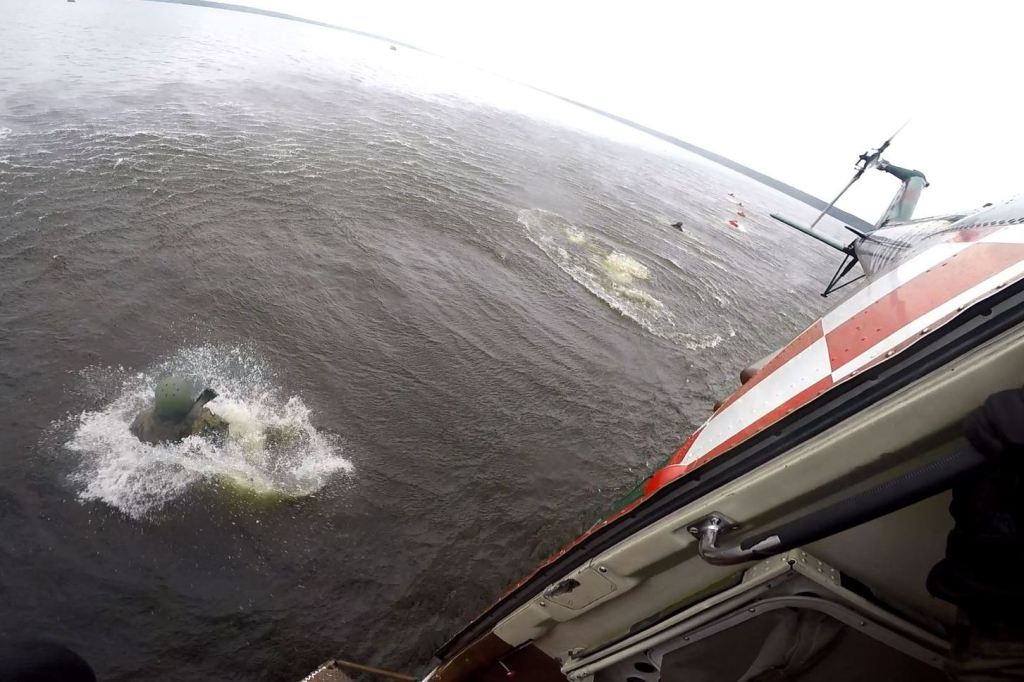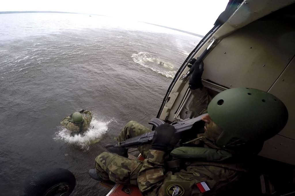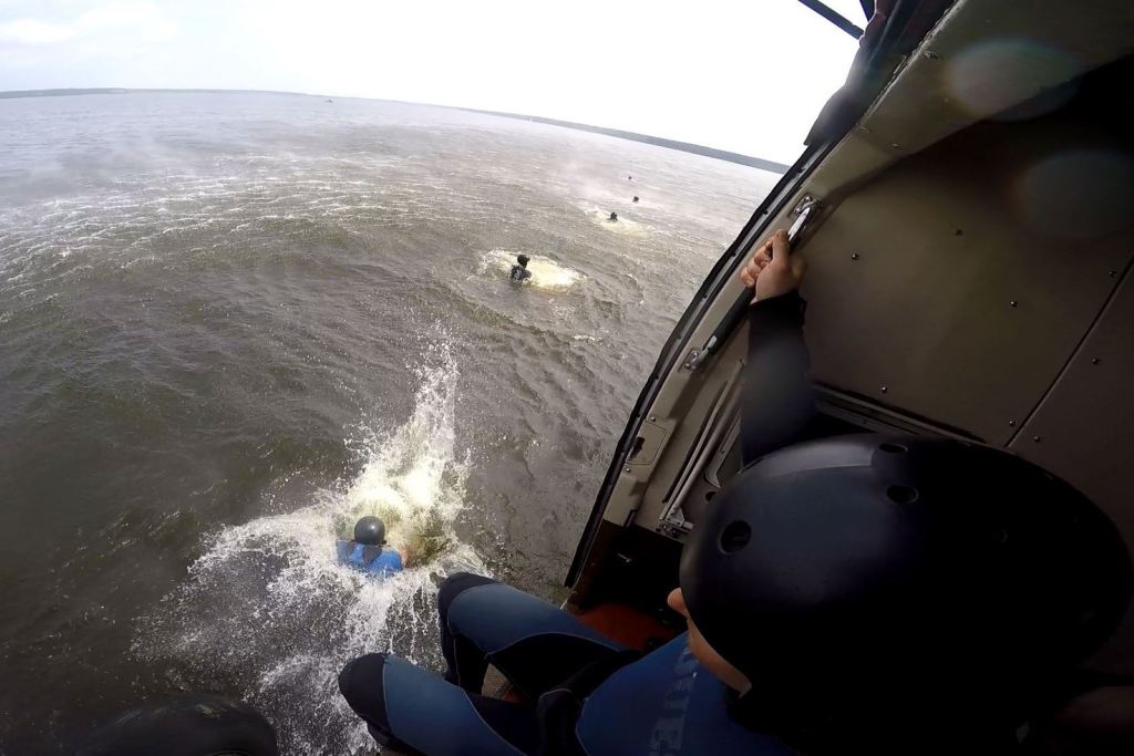 Kolejnym elementem, było szkolenie żołnierzy z plutonu płetwonurków 25 batalionu dowodzenia, gdzie scenariusz zajęć zakładał, iż przelatując na akwenem wodnym, jeden z silników śmigłowca uległ awarii. W konsekwencji zdarzeń dowódca statku powietrznego nakazał jak najszybsze opuszczenie pokładu. Żołnierze desantowali się tzn. metodą kropelkową, wyskakując jeden za drugim z wysokości ok 2m. z wolno lecącego śmigłowca. Po desancie zadaniem żołnierzy było przypłynąć do brzegu.