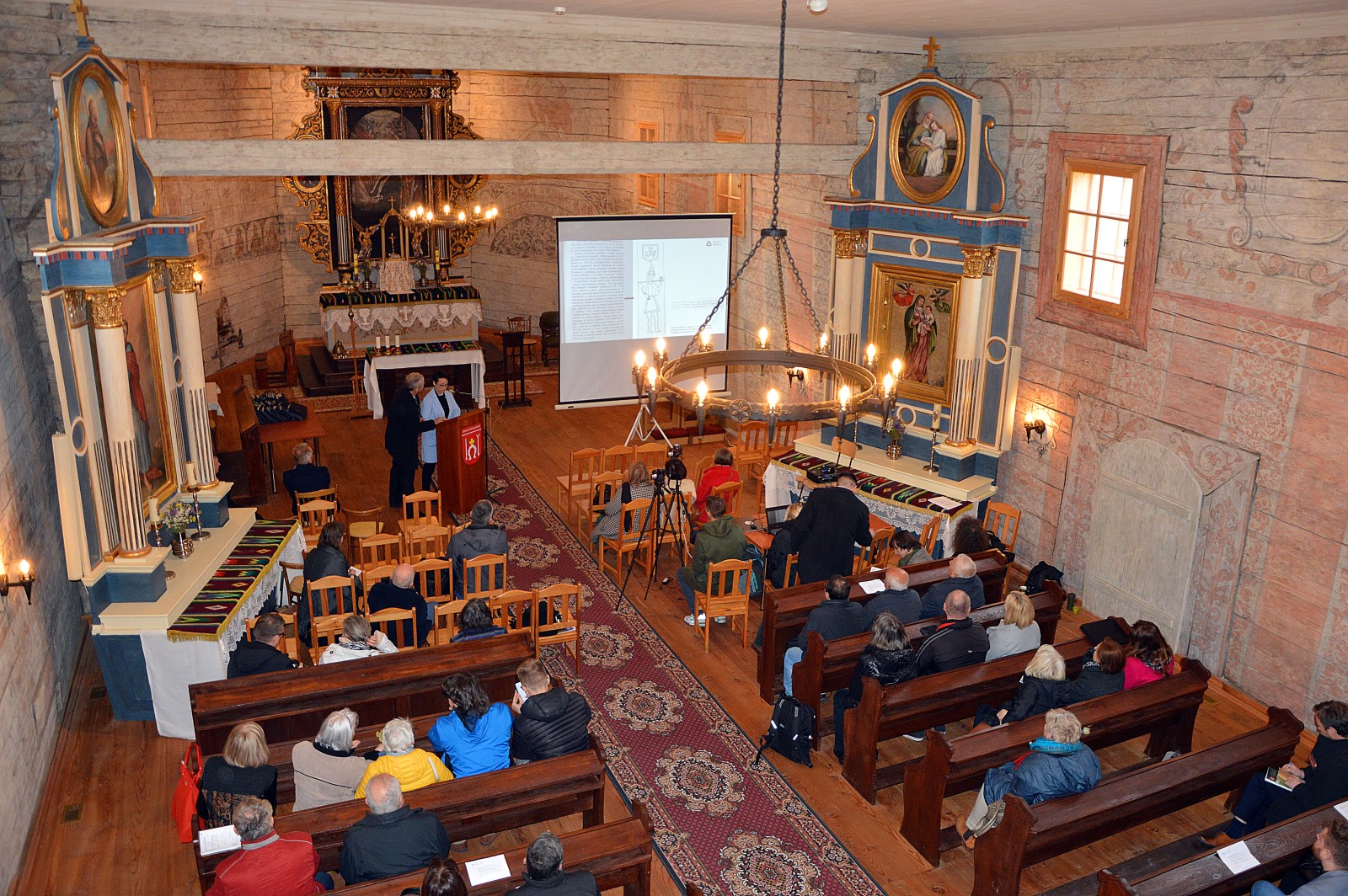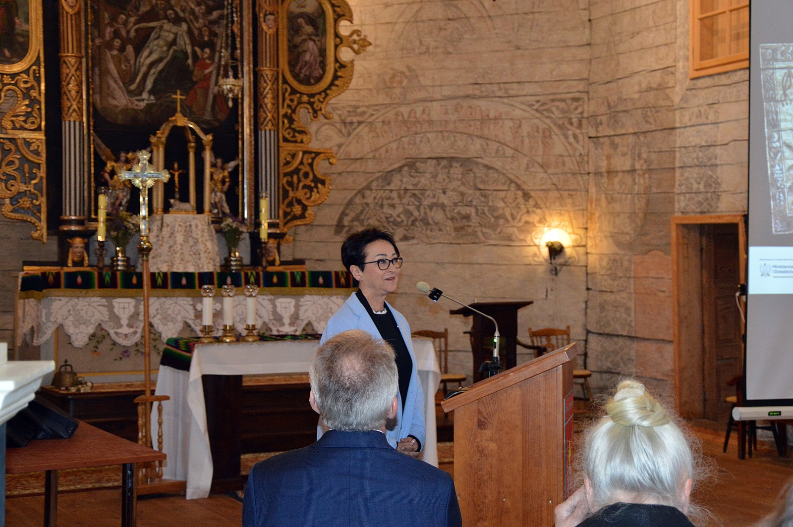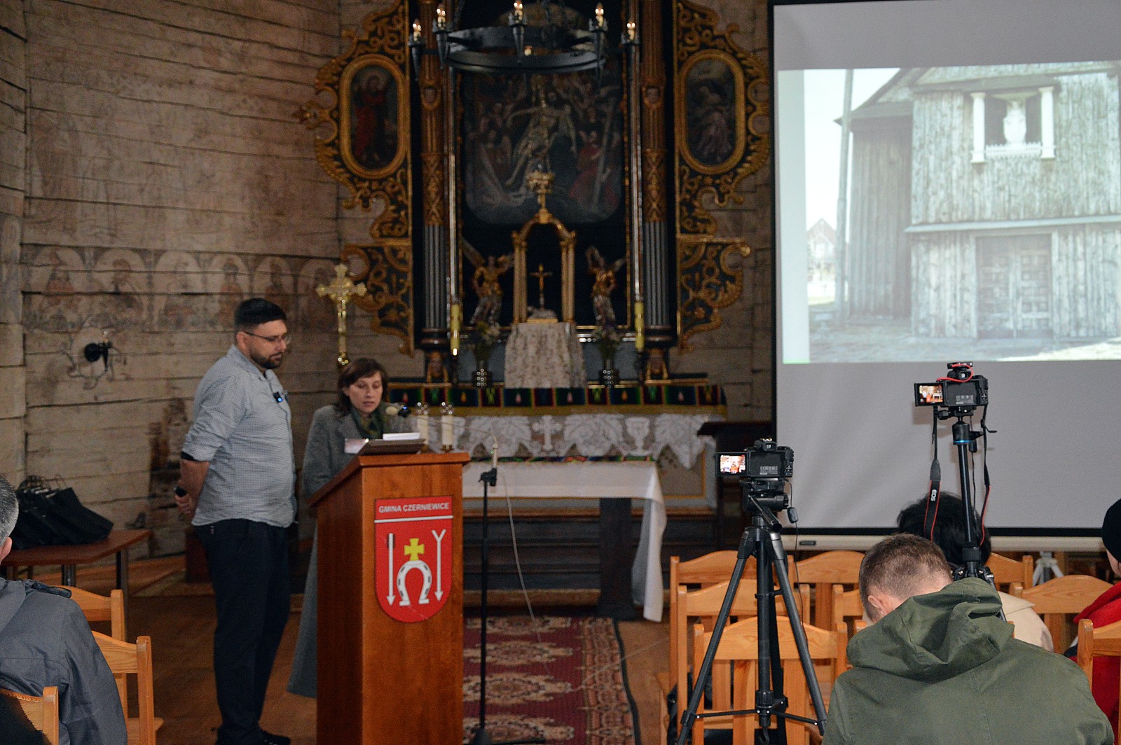 Gminę odwiedzili specjaliści w dziedzinie ochrony zabytków i podzielili się wiedzą oraz doświadczeniami na rzecz ochrony materialnego dziedzictwa kulturowego. Uczestnicy konferencji mogli poznać m.in. historię „ratowania” drewnianego kościoła, na archiwalnych zdjęciach obejrzeć odkrywanie pierwotnego wyglądu oraz posłuchać próby interpretacji ikonograficznej znajdujących się tam polichromii.