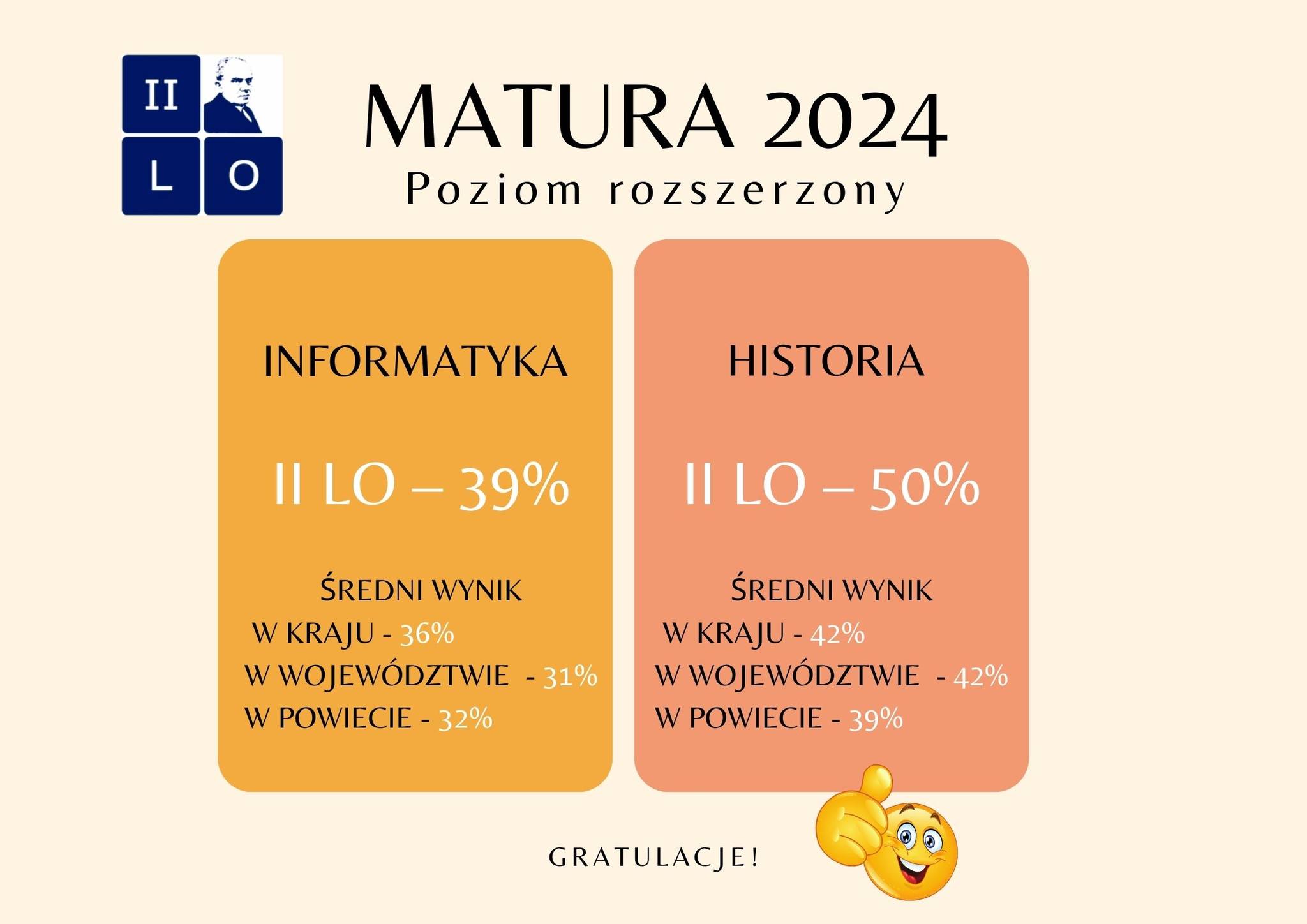 W tym roku wielu absolwentów osiągnęło 100% wyniki z poszczególnych przedmiotów, kilku było zwolnionych z egzaminu ponieważ są laureatami i finalistami olimpiad przedmiotowych.