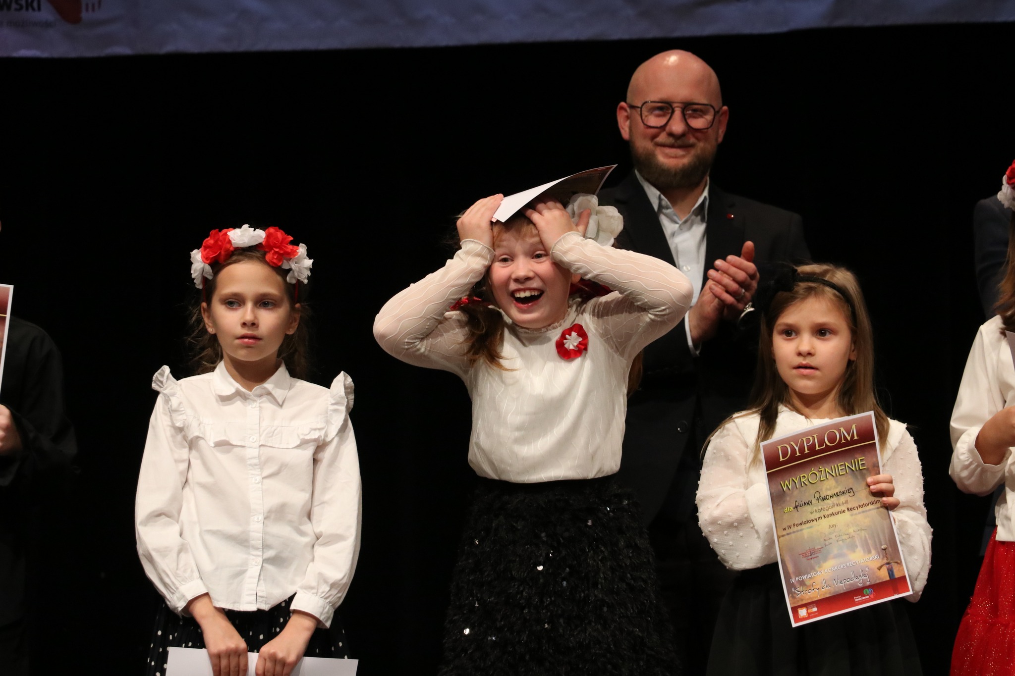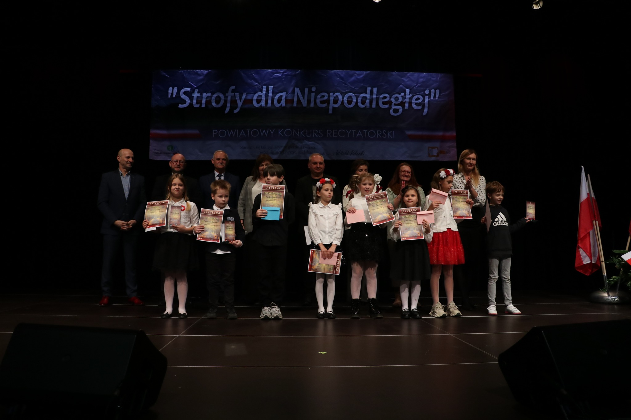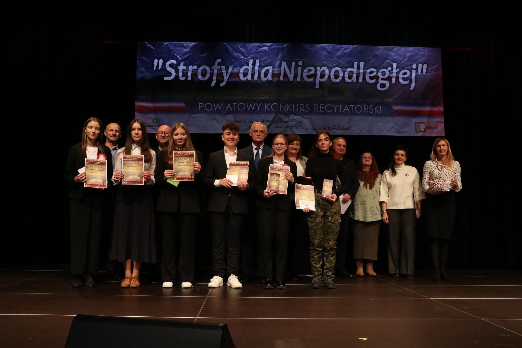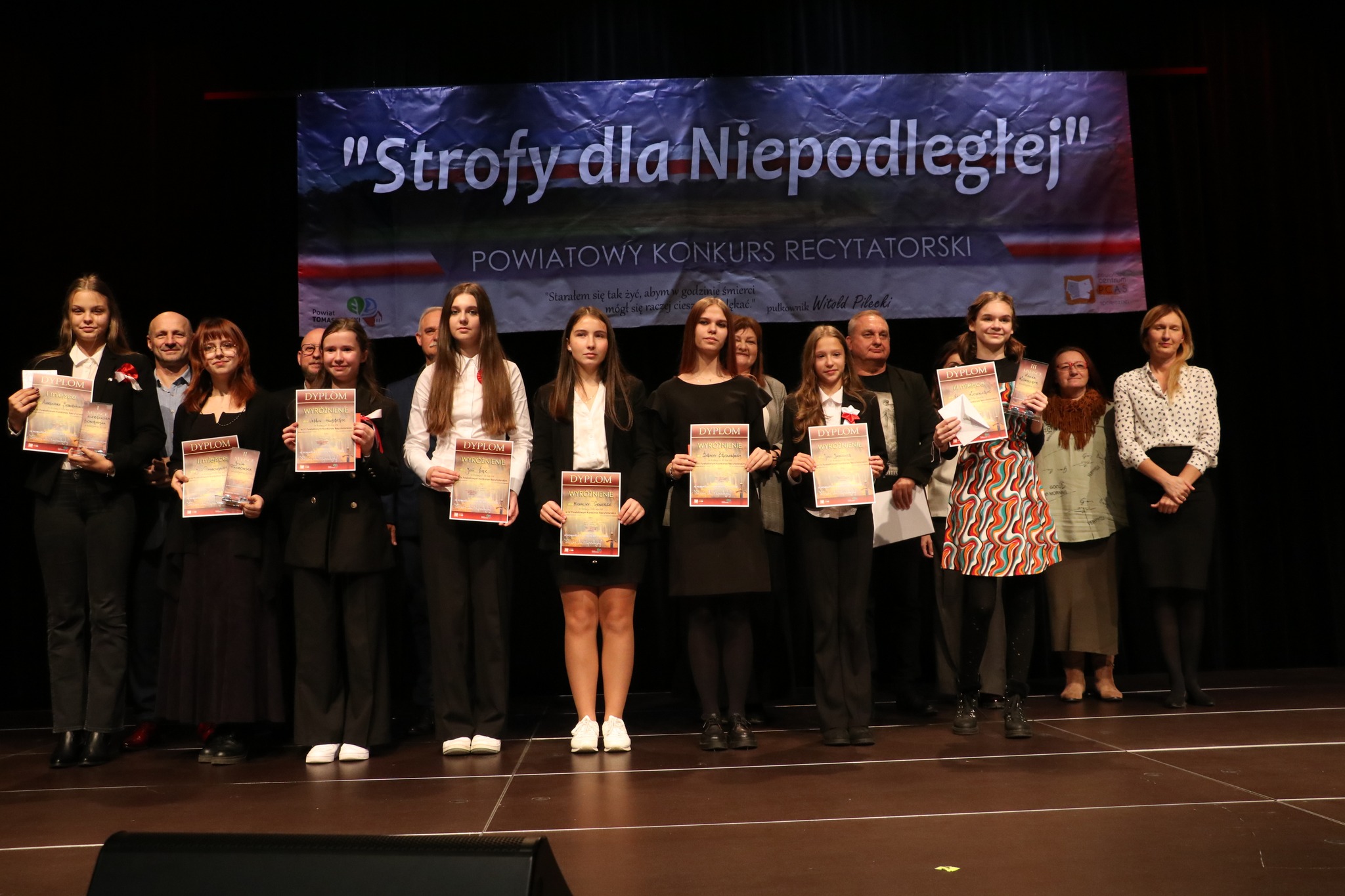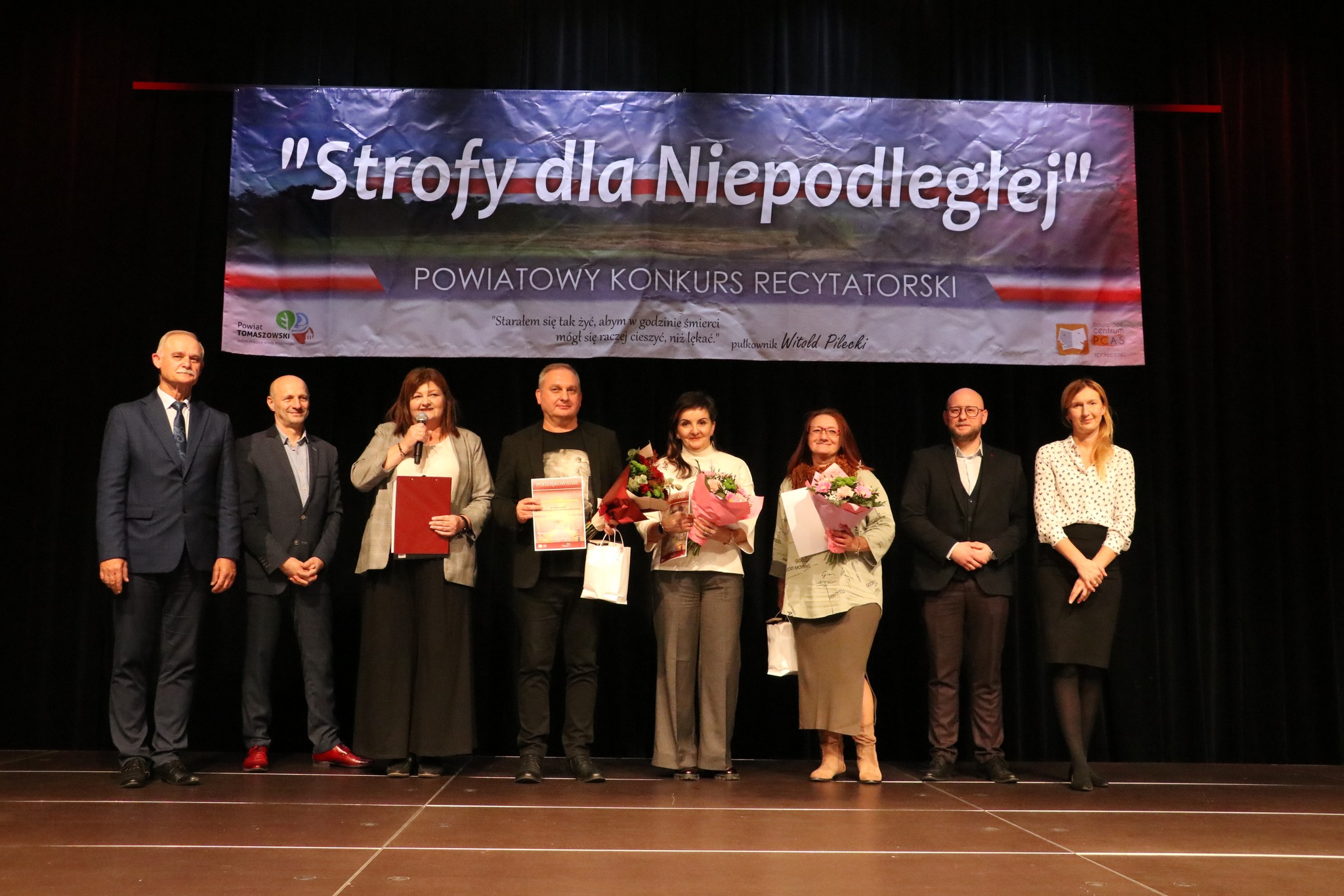 - Już kolejny raz właśnie tym konkursem świętujemy odzyskanie przez Polskę niepodległości – mówi Dorota Ignasiak, dyrektor PCAS-u. – Prezentacje konkursowe niezmiennie wzruszają i wywołują mnóstwo emocji, nie tylko wśród widzów, ale też wśród wykonawców. Ci młodzi ludzie są niezwykle autentyczni i myślę, że to przygotowanie do konkursu, dobór repertuaru, czyli zapoznanie się z twórczością patriotyczną, wzbudza w nich empatię i buduje więzi z Ojczyzną, co jest bardzo ważne, bo dzisiejsza rzeczywistość, mocno wirtualna, temu nie sprzyja. Z roku na rok obserwujemy wyższy poziom prezentacji i, co cieszy, więcej uczestników. Na scenie zaprezentowało się ponad 90 wykonawców. Jury miało zatem dużo więcej pracy i na pewno trudniej było wybrać zwycięzców, dlatego mieliśmy w tym roku tyle wyróżnień. Bardzo dziękuję uczniom, nauczycielom i oczywiście rodzicom za tak wysoką frekwencję i mogę już z przyjemnością zaprosić na przyszłoroczną, jubileuszową, bo 5, edycję konkursu.