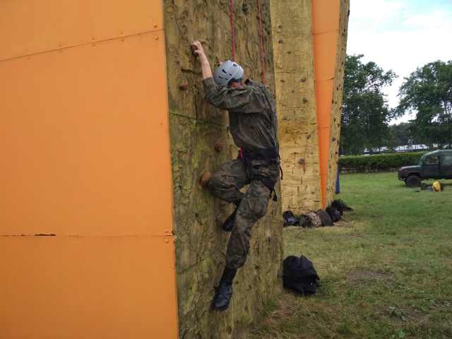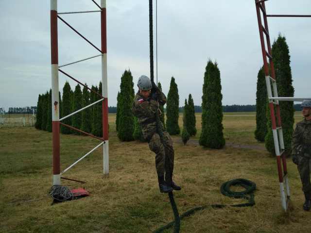 Właśnie takim wyzwaniom sprostać musieli nasi kadeci w trakcie szkolenia na ośrodku szkoleniowym 25 Brygady Kawalerii Powietrznej. Desantowanie z atrapy śmigłowca, pokonywanie tory przeszkód, wspinanie się na ścinkę i w końcu najtrudniejsze, ale wyzwalające najwięcej adrenaliny desantowanie techniką linową. dzięki instruktorom 7 batalionu szkolenie przebiegało sprawnie i efektywnie, choć nie wszystko wydawało się na początku takie proste i oczywiste. W praktyce wygląda to nieco inaczej niż można było to sobie wyobrazić. Nie obyło się więc od przełamywania własnych słabości, ale końcowy efekt przeszedł nasze najśmielsze oczekiwania, Wszyscy kadeci zaliczyli ten dzień na piątkę.