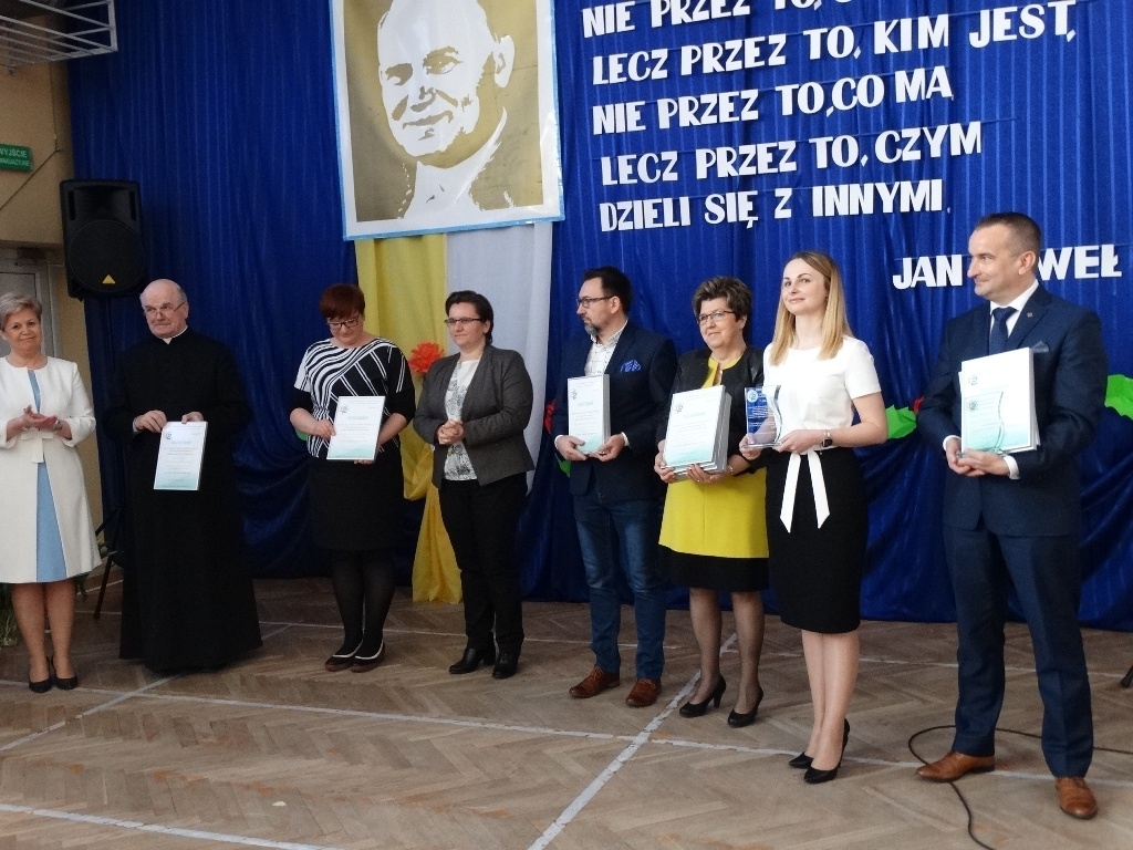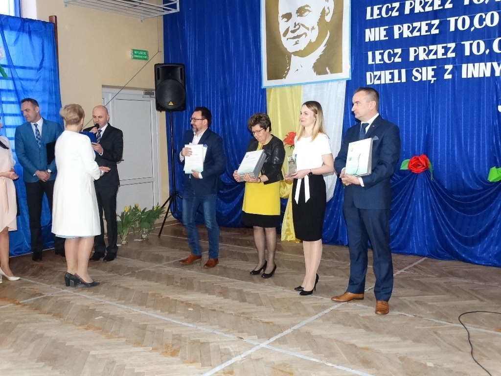 Pani Iwona Sudak – Dyrektor Zespołu Szkolno – Przedszkolnego nr 2 w Tomaszowie Mazowieckim podczas wręczania statuetek i wyróżnień podziękowała również przedstawicielom organu prowadzącego - Urzędowi Miasta Tomaszowa Mazowieckiego, Zarządowi Spółek Grupy Paradyż oraz osobom zaprzyjaźnionym z placówką i wspomagającym szkołę w realizacji jej różnorodnych zadań.