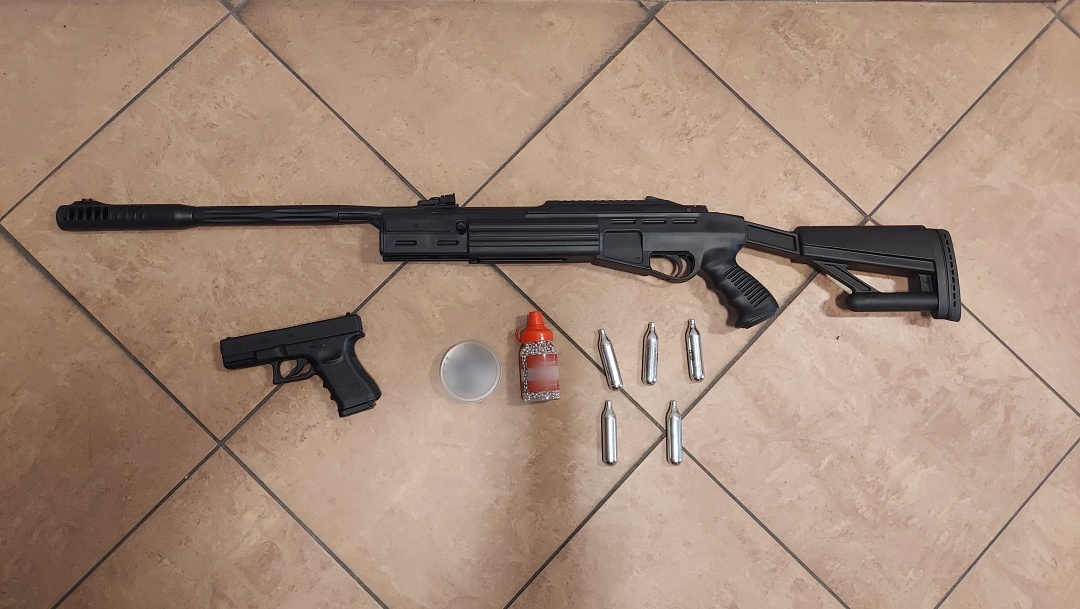 W wyniku przeszukania w jednym z pomieszczeń policjanci zabezpieczyli dwie wiatrówki, wraz z metalowymi pociskami i zbiornikami na sprężone powietrze. Ponadto pojemniki, w których znajdował się susz konopi innych niż włókniste co potwierdziło badanie narkotestem o łącznej wadze ponad 11 gramów, ponad 14 gramów suszu grzybków halucynogennych oraz podłoże z grzybnią.