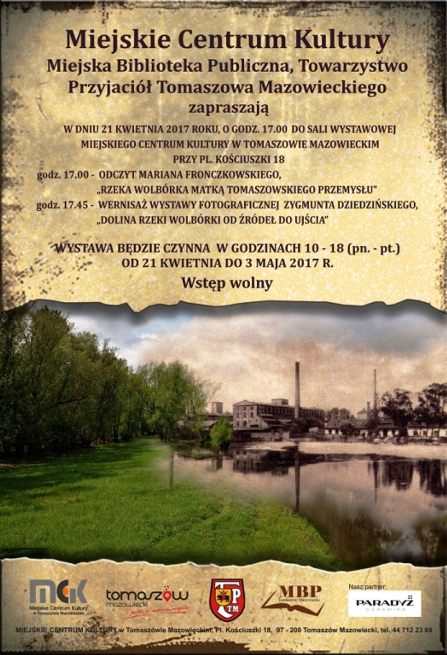 - godz. 17.00 – odczyt Mariana Fronczkowskiego „Rzeka Wolbórka matką tomaszowskiego przemysłu”,