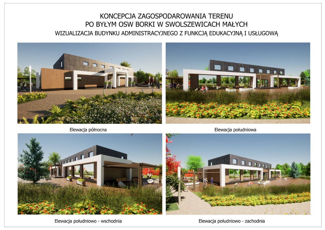 Strefa edukacyjna, gdzie planuje się budowę: pasywnego obiektu administracyjnego z funkcjami edukacyjnymi i usługowymi na parterze wraz z wydzielonym miejscem na klubokawiarnię – miejsce na odpoczynek i czytelnię. W klubokawiarni proponuje się zlokalizowanie automatów z zimnymi i gorącymi napojami oraz małymi przekąskami. Na piętrze zaplanowano pokoje noclegowe z łazienkami (m.in. dla prelegentów) oraz aneksem kuchennym ogólnodostępnym dla gości wyposażonym w podstawowe sprzęty kuchenne.