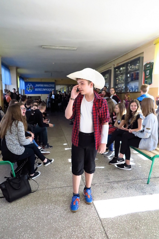 Kolejnym teatralnym akcentem tego dnia była „Rewia postaci literackich w kostiumach teatralnych”, w której uczestniczyli przedstawiciele zespołów klasowych. Wśród społeczności uczniowskiej pojawili się m.in. : Balladyna, Pan Kleks, Jakub Marley, Pinokio i inni.
