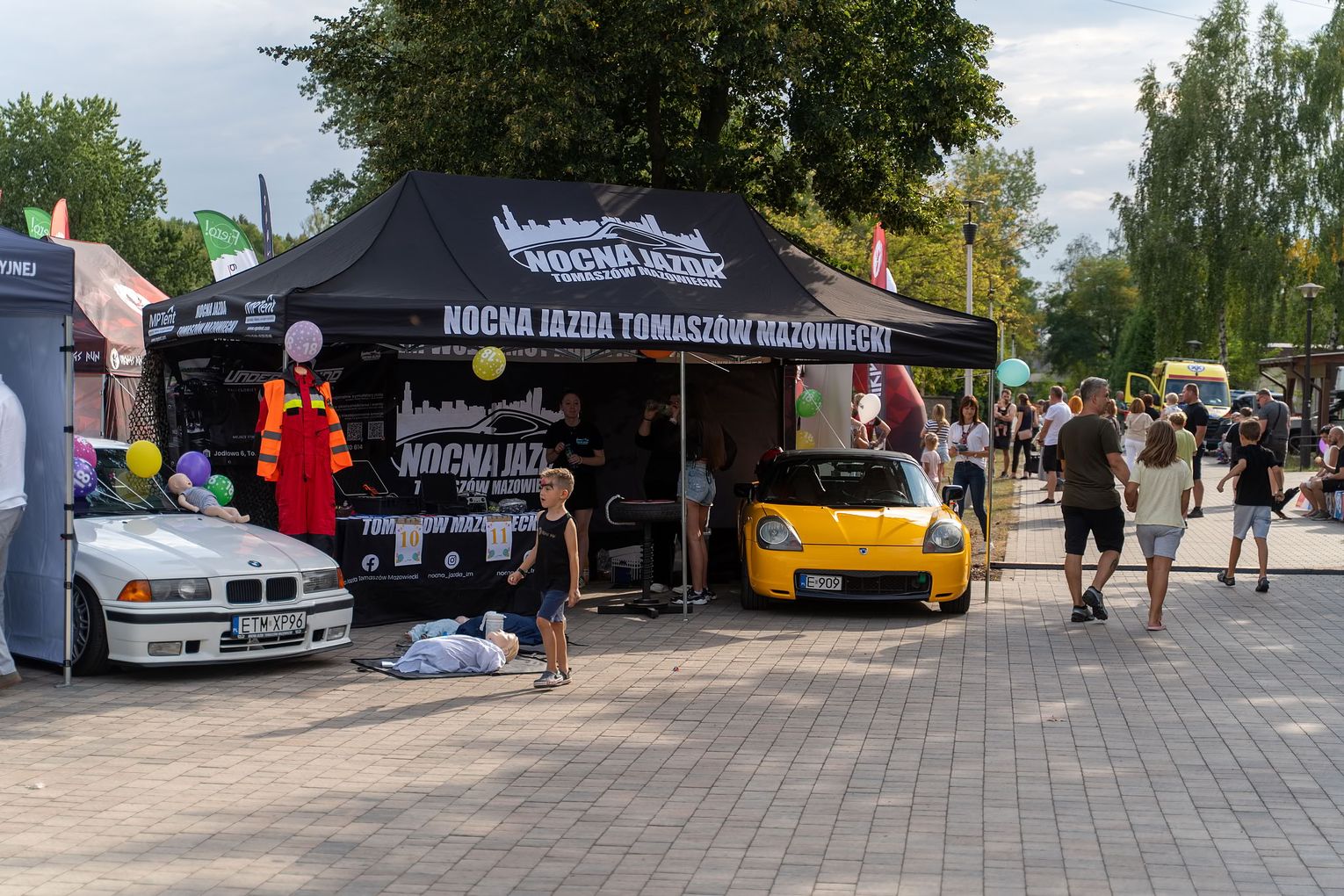 Od godziny 15:00 teren przystani wypełniły stoiska prawie 30 NGO-sów i grup nieformalnych. Każde z nich przyciągało czymś innym: jedni zapraszali na warsztaty i pokazy, inni na konkursy, grę terenową z nagrodami czy edukacyjne „minilekcje” o tym, jak działa trzeci sektor. Był tor przeszkód Ninja Kids, Piana Party, występ MUKS Wiking w kajak-polo, a obok — wystawa klasyków amerykańskiej motoryzacji od AM CAR Squad TM. Najmłodsi okupowali dmuchańce i fotobudkę, dorośli zaglądali na stanowisko MCK i do stref promocyjno-edukacyjnych. Równolegle trwała zbiórka szkła, elektrośmieci i tekstyliów — piknikowa zabawa łączyła się z codzienną odpowiedzialnością.