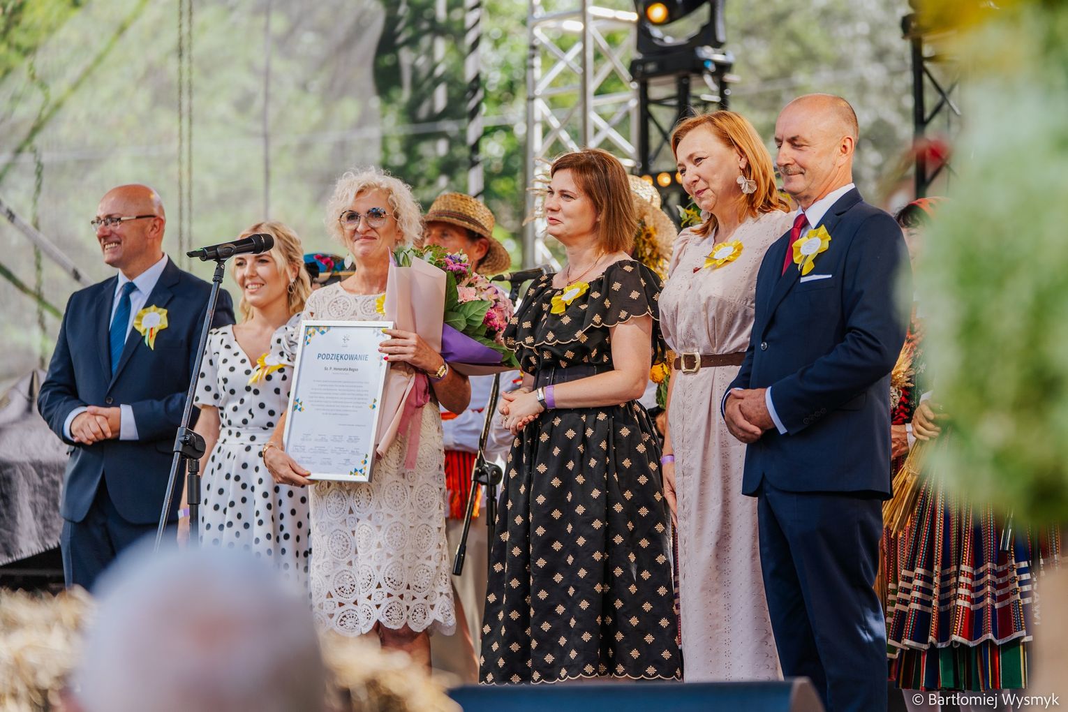 Nagrodę dla sołectwa Skrzynki odebrała sołtys Bogusława Madzio (co potwierdza urząd gminy w profilu sołectwa), a Elżbieta i Michał Lubińscy, właściciele WORKS 11 Sp. z o.o., otrzymali gratulacje z okazji 20-lecia firmy. W imieniu burmistrza część podziękowań na scenie przekazała sekretarz gminy Honorata Bogus – co podkreślono także w relacjach organizatorów.