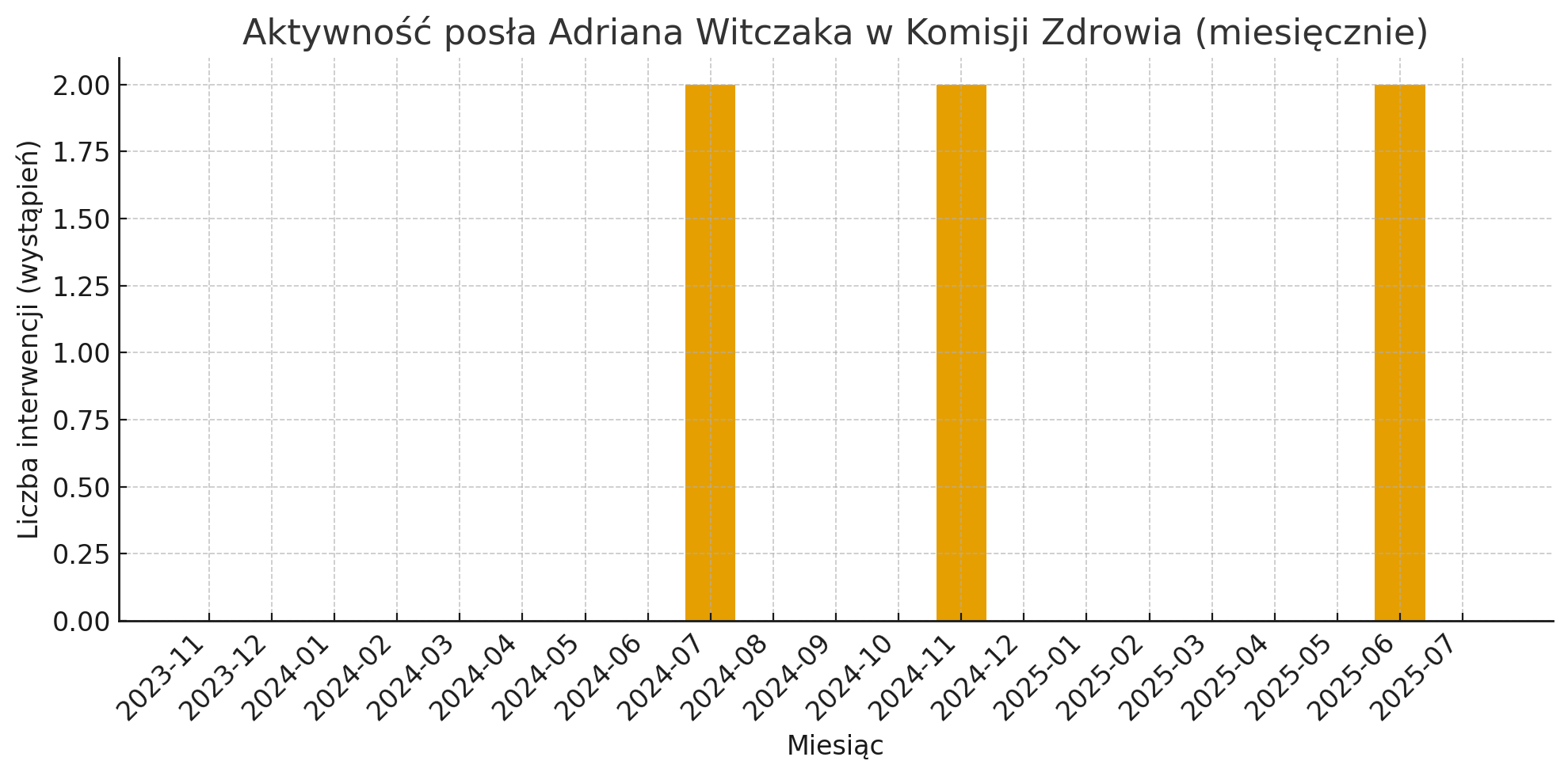 Adrian Witczak nie zabrał głosu w sprawie Krajowej Sieci Kardiologicznej ani w tematach dotyczących ratowników medycznych. Jego aktywność najlepiej obrazuje wygenerowana powyżej grafika.