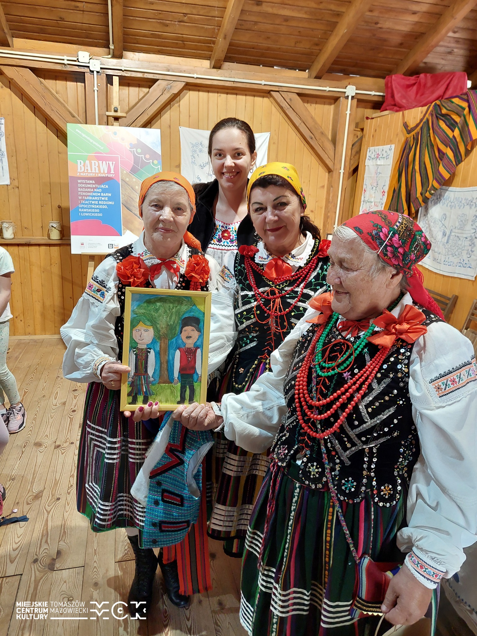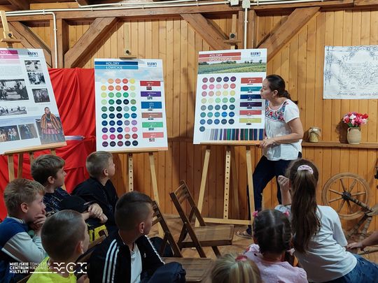 Naturalnym dopełnieniem była wystawa „Barwy Regionu”. To zapis badań nad farbiarstwem i tkactwem trzech sąsiadujących ze sobą regionów, ale przede wszystkim opowieść o tym, jak kolory rodziły się z przyrody: z kory, roślin i minerałów. W gablotach można było zobaczyć próbki przędzy i tkanin, porównać odcienie i zrozumieć, że „czerwony” czerwieni nierówny, a każda wieś miała swój ulubiony akcent.