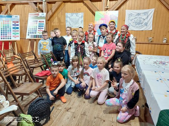 Spotkanie z KGW Smardzewice miało w sobie coś więcej niż lekcję historii. Było spotkaniem z ludźmi, którzy potrafią opowiedzieć o tradycji tak, jak opowiada się o własnym domu — ciepło, obrazowo, bez pośpiechu. Dzieci zadawały pytania o to, jak długo szyje się strój, ile waży haftowany gorset i czy łatwo zatańczyć w długiej spódnicy. Odpowiedziom towarzyszyły anegdoty z wesel, dożynek i odpustów, które budują żywy kontekst obyczajów.