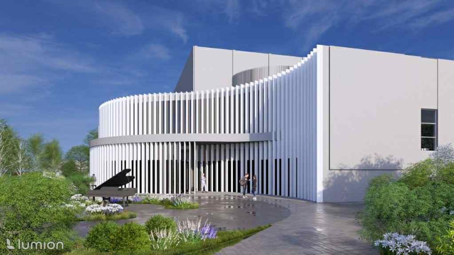 Miasto chce postawić filharmonię na obecnym parkingu między ul. Tkacką a Bulwarami. Architektura ma „nawiązywać do historii” (dawna łaźnia żydowska) i jednocześnie do „nowoczesnych standardów” – na wizualizacjach widać nawet klawisze fortepianu. Brzmi efektownie. Gorzej z nutami finansowymi: tu partytura wciąż jest w fazie domysłów.