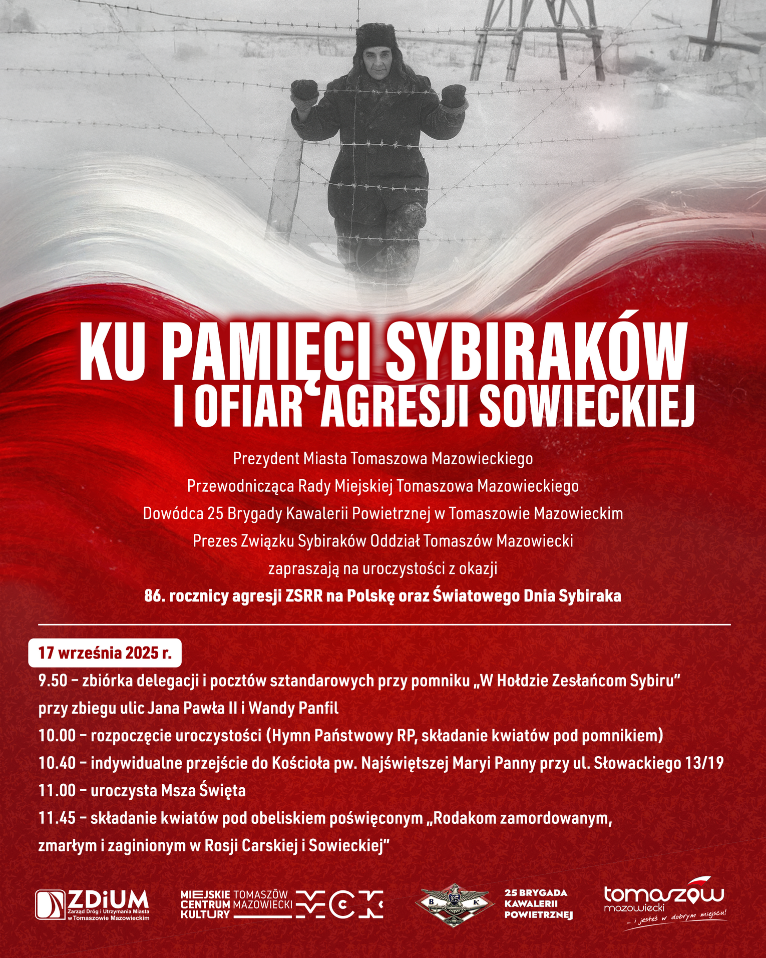 Organizatorzy zapraszają wszystkich tomaszowian – rodziny Sybiraków, kombatantów, nauczycieli i uczniów, przedstawicieli instytucji i organizacji – do wspólnego udziału. Pamięć wymaga obecności. 17 września zobaczmy się przy pomniku Zesłańców, w świątyni i pod obeliskiem, by powiedzieć głośno: pamiętamy.