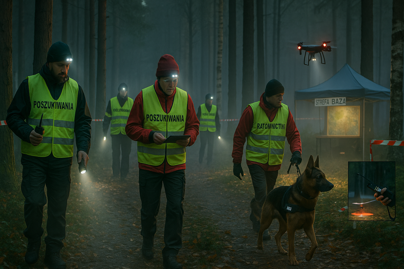 Działania poszukiwawcze to również emocje. Bywa zimno, bywa mokro, czasem długie godziny nic się nie dzieje – aż do chwili, kiedy pojawia się przełom. „Najpiękniejszy moment to ten, gdy odnajdujemy zaginioną osobę bezpieczną i całą. Nie da się tego porównać z niczym innym” – mówi członek sekcji. Właśnie dlatego tak ważne są procedury, przygotowanie i praca zespołowa. Każdy sektor, każda linia tyralierska, każda meldowana obserwacja może mieć znaczenie.