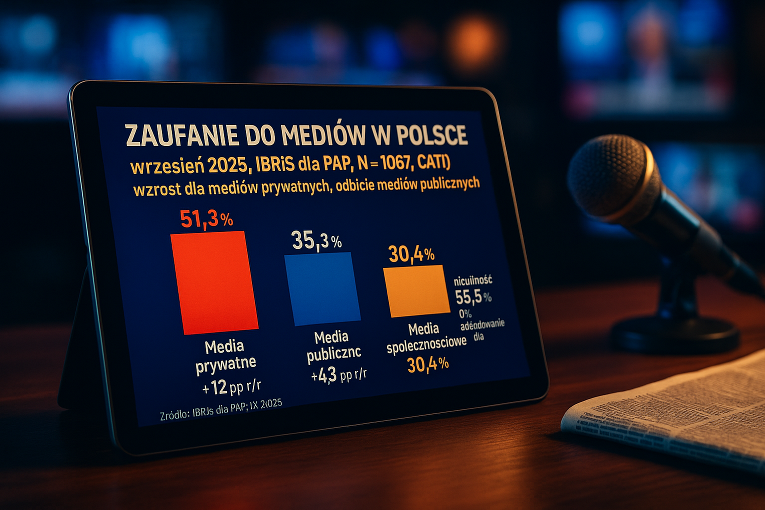 IBRiS ocenił, że w ostatnim roku nastąpiły znaczące przesunięcia w percepcji i konsumpcji mediów - media prywatne doświadczyły znaczącego wzrostu zaufania.