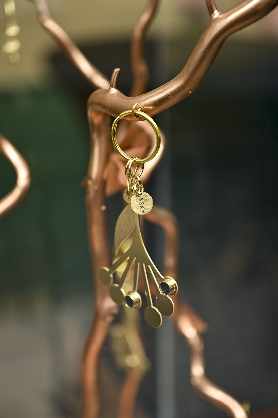 Motywy roślinne nawiązują do natury; biżuteria powstaje w duchu less waste, z wykorzystaniem elementów ceramicznych.