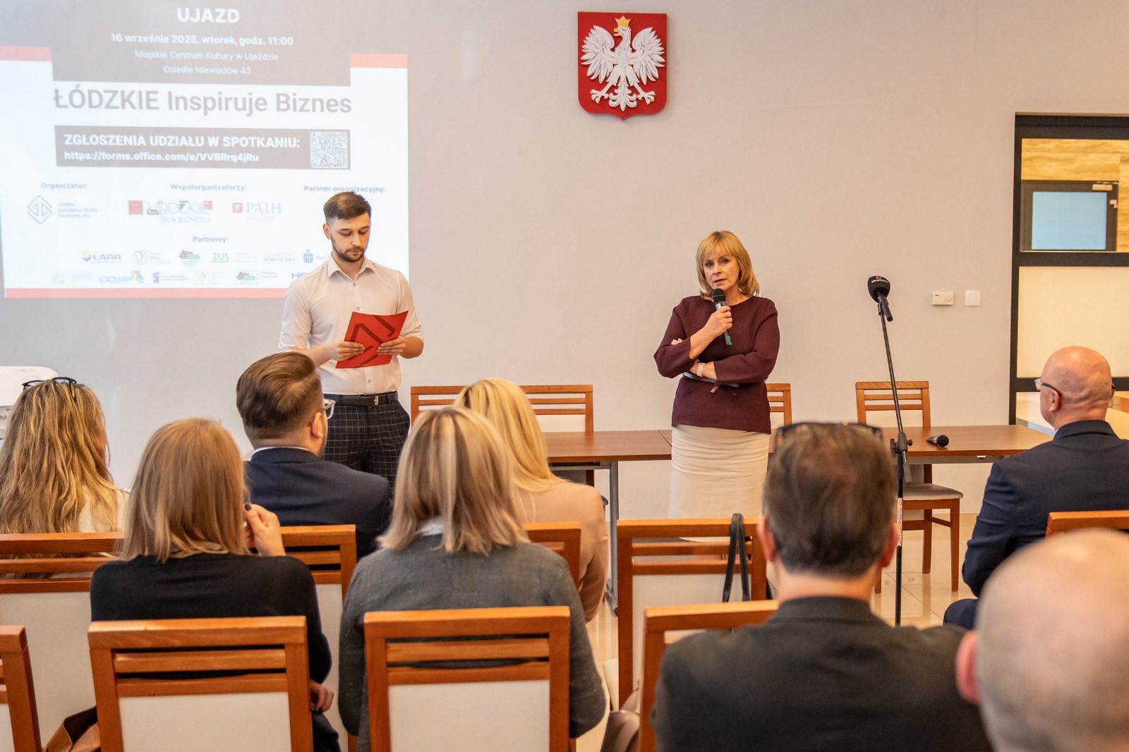 Ujazd znów przyciągnął przedsiębiorców. We wtorkowe przedpołudnie, 16 września 2025 r., sala Miejskiego Centrum Kultury przy Osiedlu Niewiadów 43 wypełniła się właścicielami firm, samorządowcami i ekspertami od wsparcia biznesu. Według organizatorów na spotkanie z cyklu „Łódzkie Inspiruje Biznes” przyjechało ponad pięćdziesięciu przedsiębiorców z gminy i okolic. Były rozmowy o pieniądzach na inwestycje, eksporcie, szkoleniach i zielonej transformacji – a na koniec indywidualne konsultacje, podczas których można było od razu sprawdzić własne pomysły i kwalifikowalność projektów. Wydarzenie zapowiadała gmina Ujazd oraz Łódzka Specjalna Strefa Ekonomiczna, które wskazywały na MCK jako miejsce spotkania i godzinę rozpoczęcia o 11.00