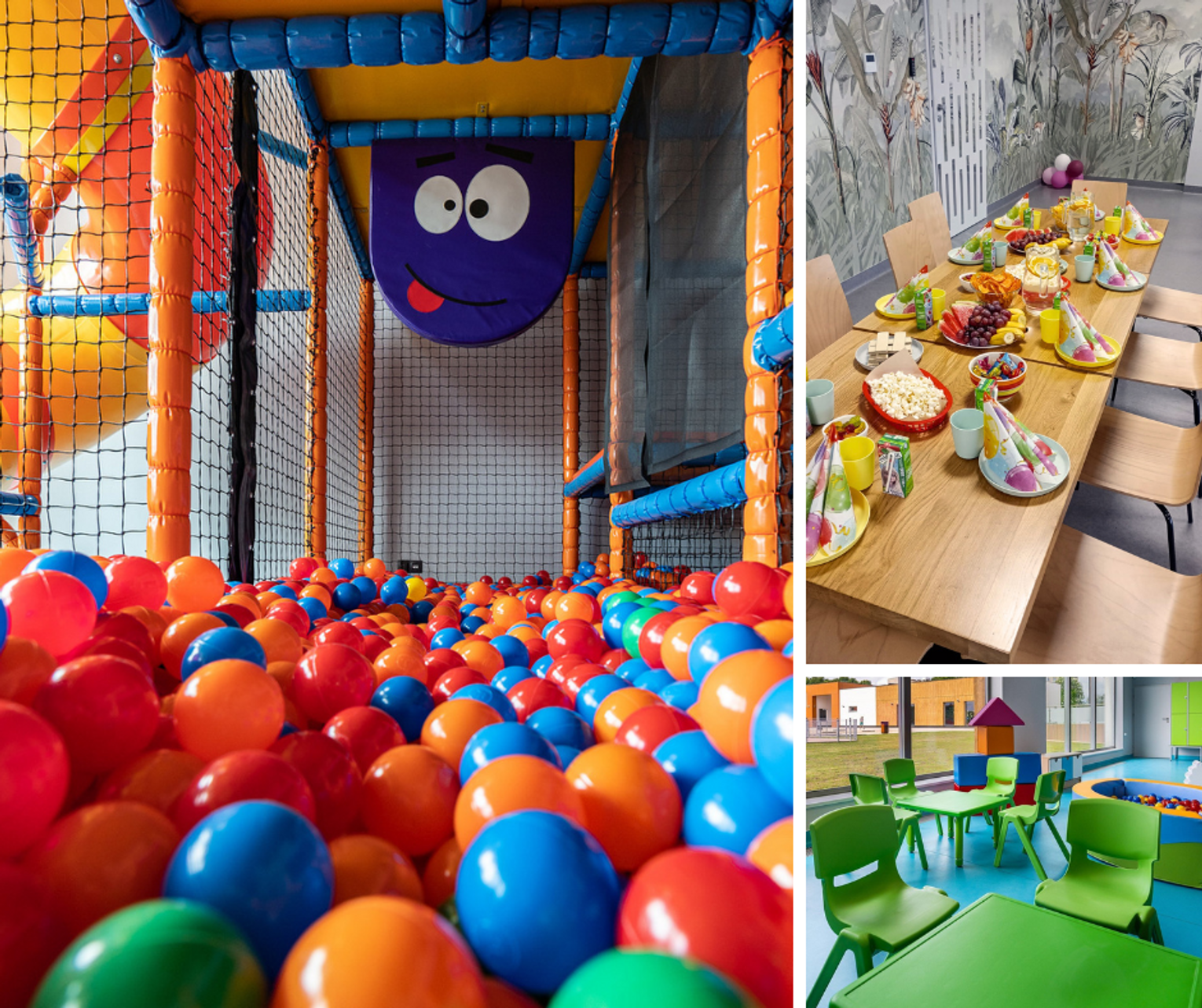 Podstawowy pakiet obejmuje aż dwie godziny zabawy w kolorowym figloraju oraz poczęstunek dostępny przez cały czas trwania imprezy. Dzieci mogą swobodnie korzystać ze stołów, robiąc przerwy wtedy, kiedy tego potrzebują.
