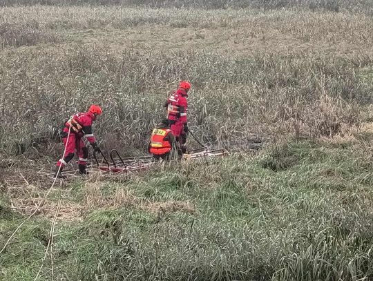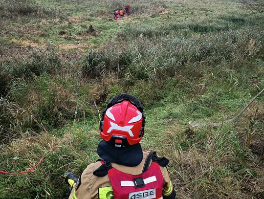 Na miejsce jako pierwsi dotarli strażacy z Tomaszowa Mazowieckiego, do których dołączyli druhowie z OSP Tomaszów Mazowiecki – Białobrzegi, dysponowani jednym zastępem GCBA. Teren akcji okazał się wyjątkowo wymagający: grząski, bagienny osad i utrudniony dostęp do zbiornika wykluczały standardowe dojście. Aby nie zapadać się w namuł, ratownicy poruszali się po rozłożonych drabinach nasadkowych, a cały zespół był asekurowany linami. Do bezpiecznego przetransportowania lekarza weterynarii na skraj zbiornika użyto sani lodowych — rozwiązania stosowanego w ratownictwie na akwenach.