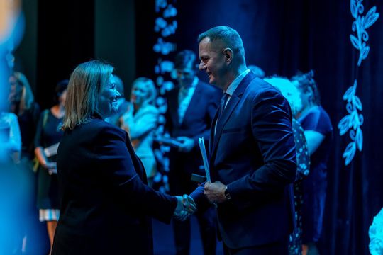 Podczas spotkania wręczono Nagrody Prezydenta Miasta oraz wyróżnienia pedagogom, którzy w roku szkolnym 2024/2025 wnieśli szczególny wkład w sukcesy swoich podopiecznych. Doceniono przede wszystkim wychowawców laureatów i finalistów konkursów przedmiotowych organizowanych przez Łódzkiego Kuratora Oświaty, a także konkursów interdyscyplinarnych i tematycznych. To właśnie dzięki codziennemu zaangażowaniu nauczycieli, cierpliwej pracy i mądrze prowadzonej motywacji uczniowie sięgają po najwyższe miejsca, promując swoje szkoły i miasto.