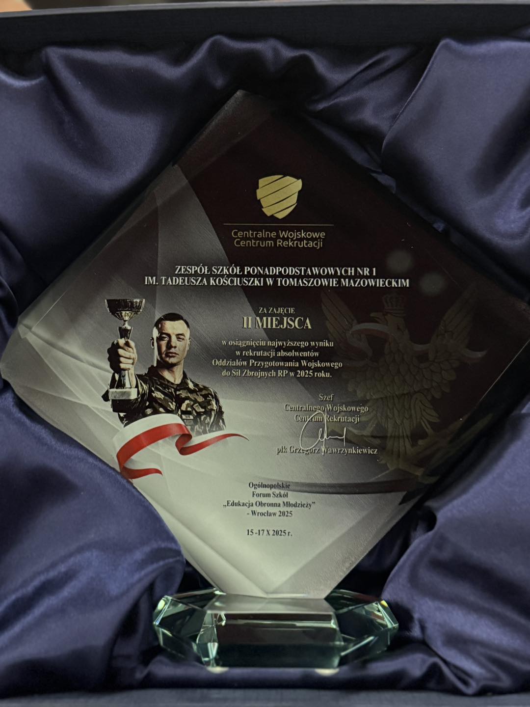 Podczas inauguracji forum wręczono wyróżnienia dla placówek, które w 2025 roku osiągnęły najwyższe wyniki w rekrutacji absolwentów Oddziałów Przygotowania Wojskowego do Sił Zbrojnych RP. Zgodnie z informacją szkoły, Zespół Szkół Ponadpodstawowych nr 1 w Tomaszowie Mazowieckim zajął 2. miejsce w kraju, co potwierdza skuteczność tomaszowskiego modelu kształcenia w klasach OPW. W czasie uroczystości przyznano również odznaczenia „Za Zasługi dla Obronności Kraju”, które wręczał szef CWCR płk Grzegorz Wawrzynkiewicz.