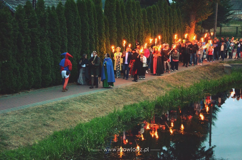 Pochód wzbogacony o migoczące płomienie pochodni oraz rytmiczną grą bębnów robił niesamowite wrażenie. Nad rzeką zapłonęły ogniska, odbył się Fireshow, a uwite wcześniej wianki unosiły się pięknie na wodzie. O wspaniałą klimatyczną oprawę zadbała Kasztelania Inowłodzka, Piotr Pastusiak Kasztelan Zamku w Inowłodzu i Randia Filutowska.