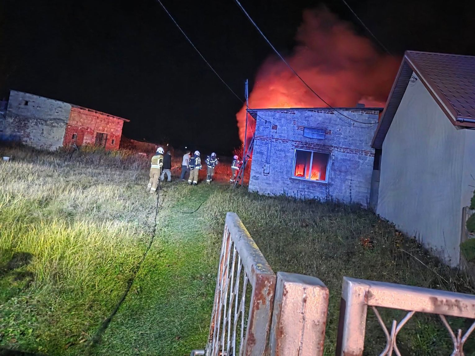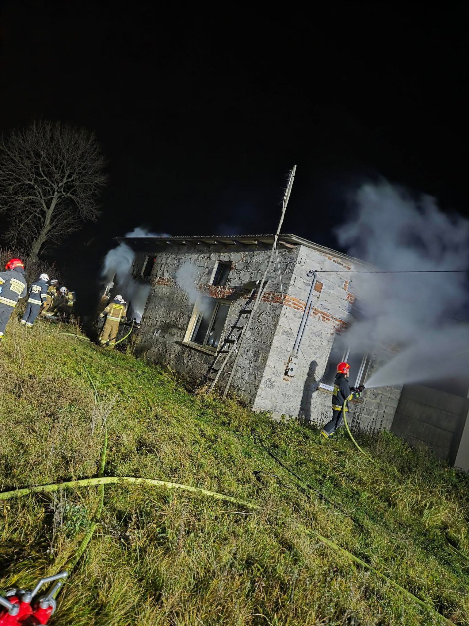Dziś w nocy zostaliśmy zadysponowani dwoma zastępami gaśniczymi do miejscowości Lubochnia-Górki. Według zgłoszenia - pożar domu, w środku znajduje się osoba poszkodowana. Na miejscu zastaliśmy rozwinięty pożar budynku mieszkalnego. Zabezpieczono miejsce zdarzenia. Strażacy w aparatach ODO podali dwa prądy wody. Z wnętrza budynku ewakuowano osobę poszkodowaną udzielając jej pomocy medycznej do czasu przyjazdu Zespołu Ratownictwa Medycznego. Dalsze czynności polegały na dokładnym przelaniu spalonych elementów oraz sprawdzeniu budynku przy pomocy kamery termowizyjnej.