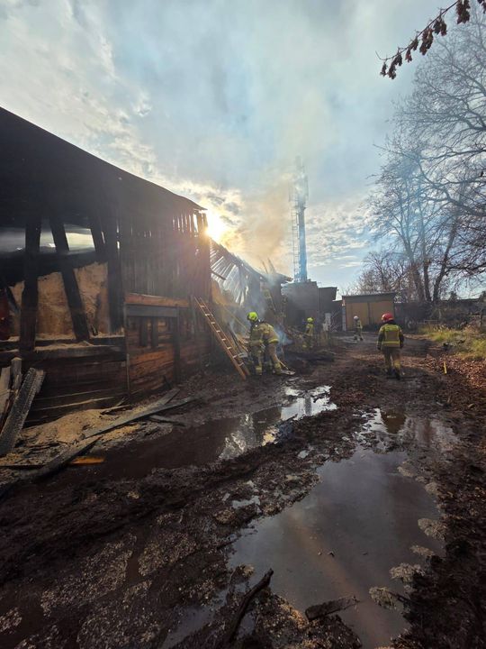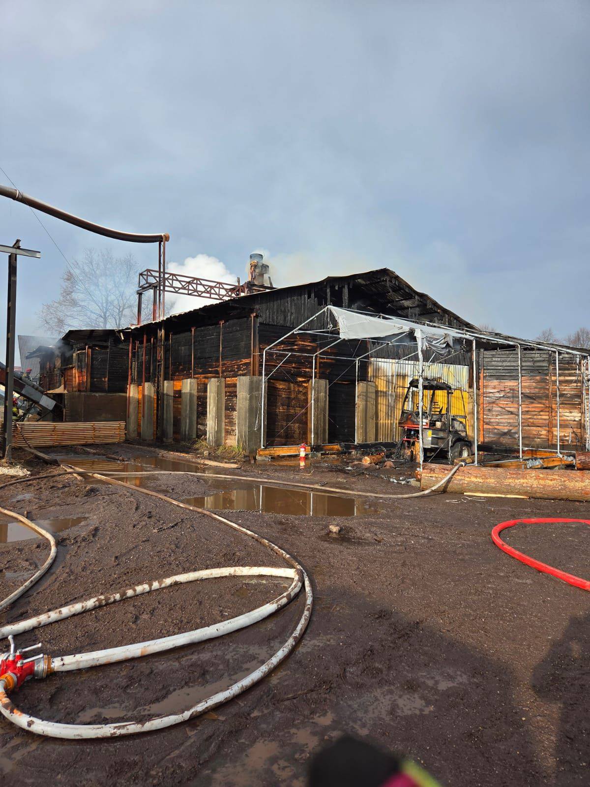 Działania strażaków polegały na zabezpieczeniu miejsca zdarzenia, wprowadzeniu do wnętrza hali ratowników w aparatach ODO, ugaszeniu pożaru przy pomocy czterech prądów wody w natarciu, a następnie rozbiórce nadpalonych elementów konstrukcyjnych budynku. Obiekt został dokładnie sprawdzony kamerą termowizyjną, a znajdujące się wewnątrz trociny przelano wodą, aby wyeliminować ryzyko ponownego zapłonu.