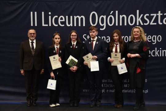 Święto Patrona to również czas, gdy II LO wyróżnia uczniów o wybitnych osiągnięciach. Nagrodę im. Stefana Żeromskiego za wybitne osiągnięcia naukowe otrzymali w tym roku: