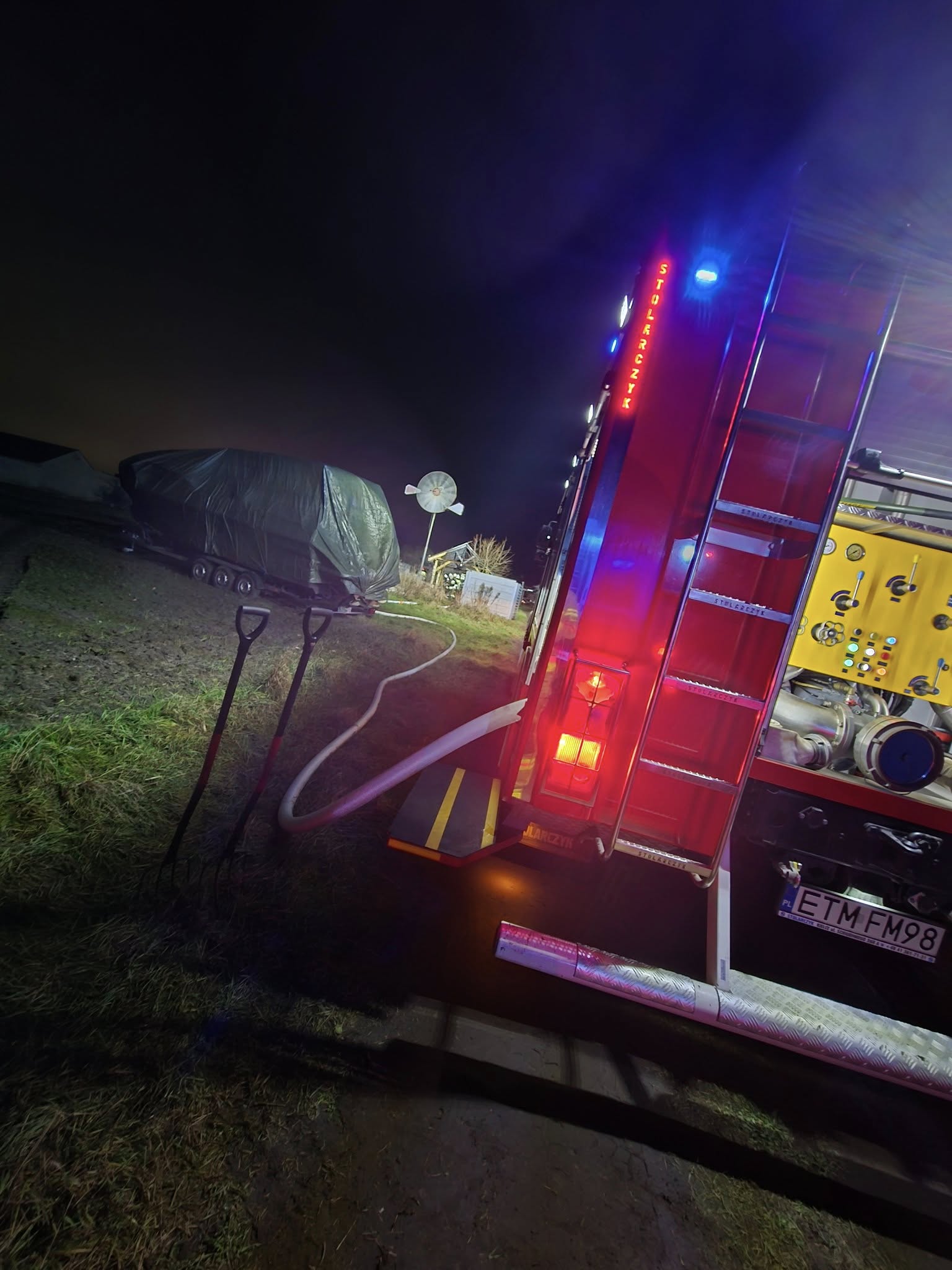 Po dojeździe pierwszych jednostek strażacy zastali altanę objętą ogniem. Działania rozpoczęto od zabezpieczenia miejsca zdarzenia i odcięcia dostępu osób postronnych. Ratownicy, wyposażeni w aparaty ochrony dróg oddechowych, podali dwa prądy wody na płonącą konstrukcję, co pozwoliło szybko opanować ogień i zapobiec jego rozprzestrzenieniu się na sąsiednie zabudowania.