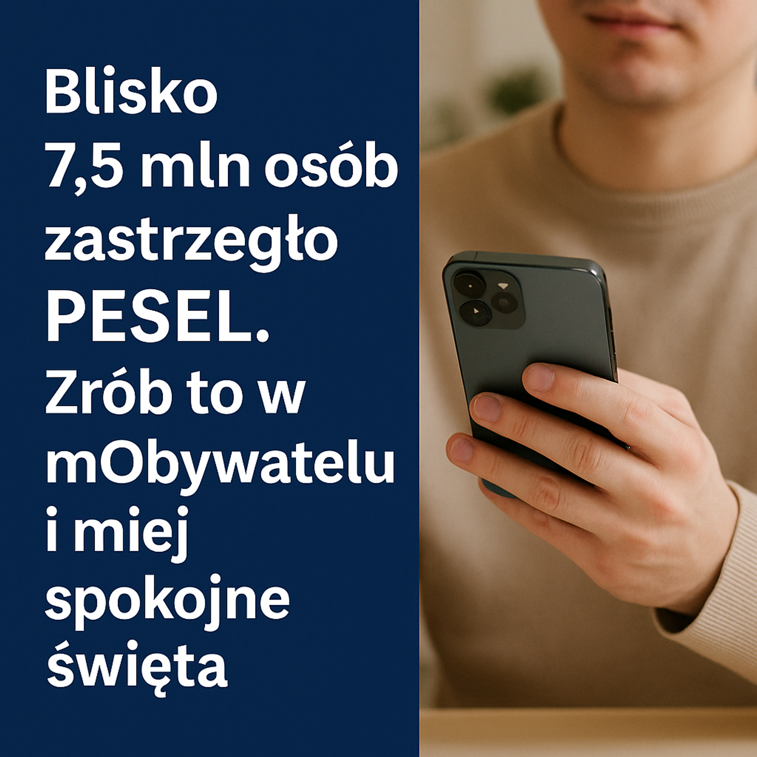 Blisko siedem i pół miliona Polek i Polaków zastrzegło swój PESEL. Zrób to w mObywatelu i miej spokojne święta