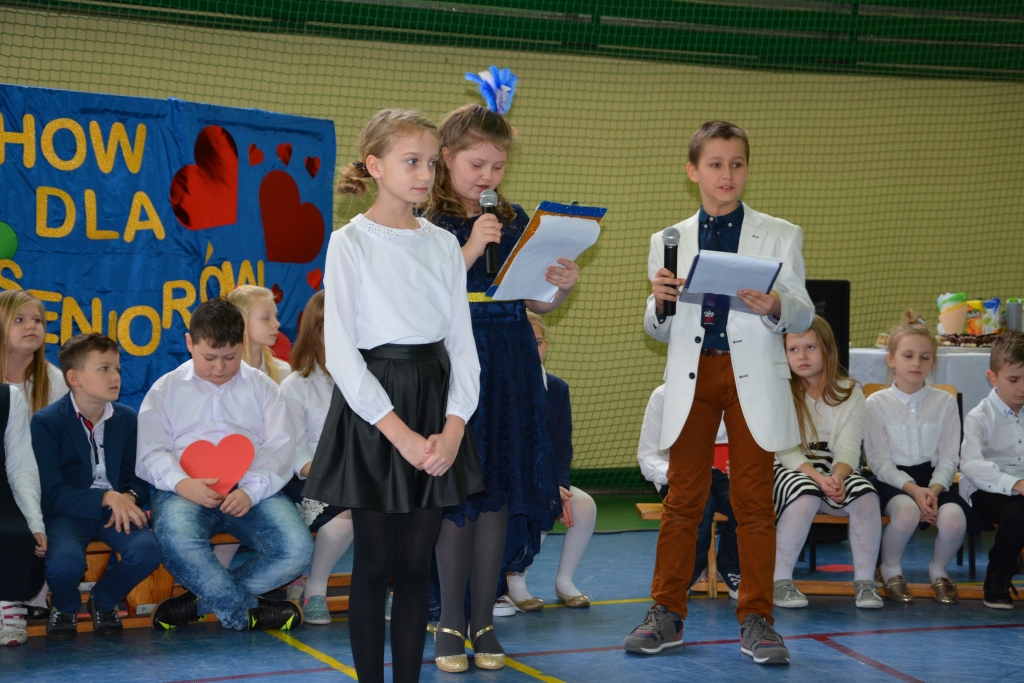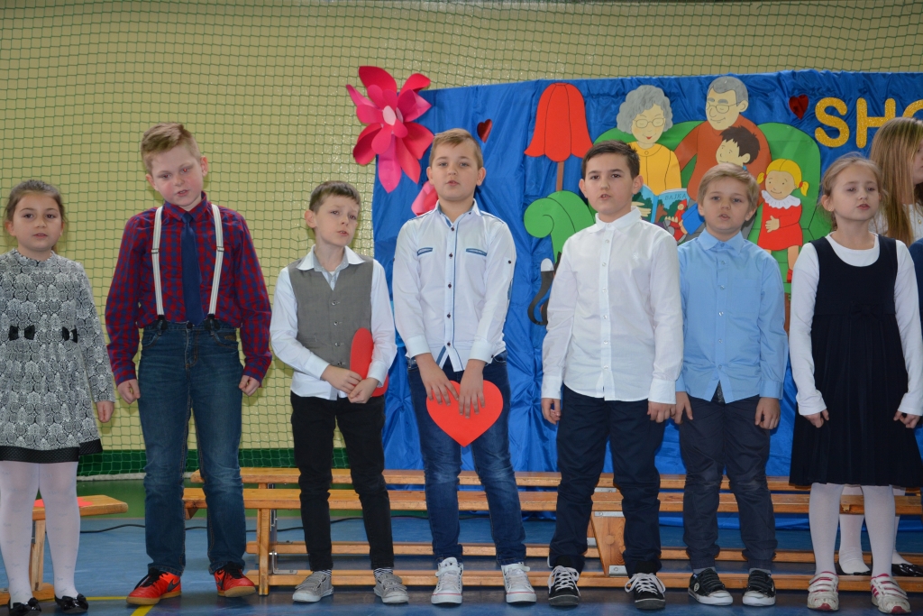 Trzecioklasiści recytowali wiersze, śpiewali piosenki. Gromkie brawa otrzymał taniec ludowy do melodii rzeszowskiej ,,Babka i dziadek’’. Seniorzy z dumą patrzyli na swoje pociechy.