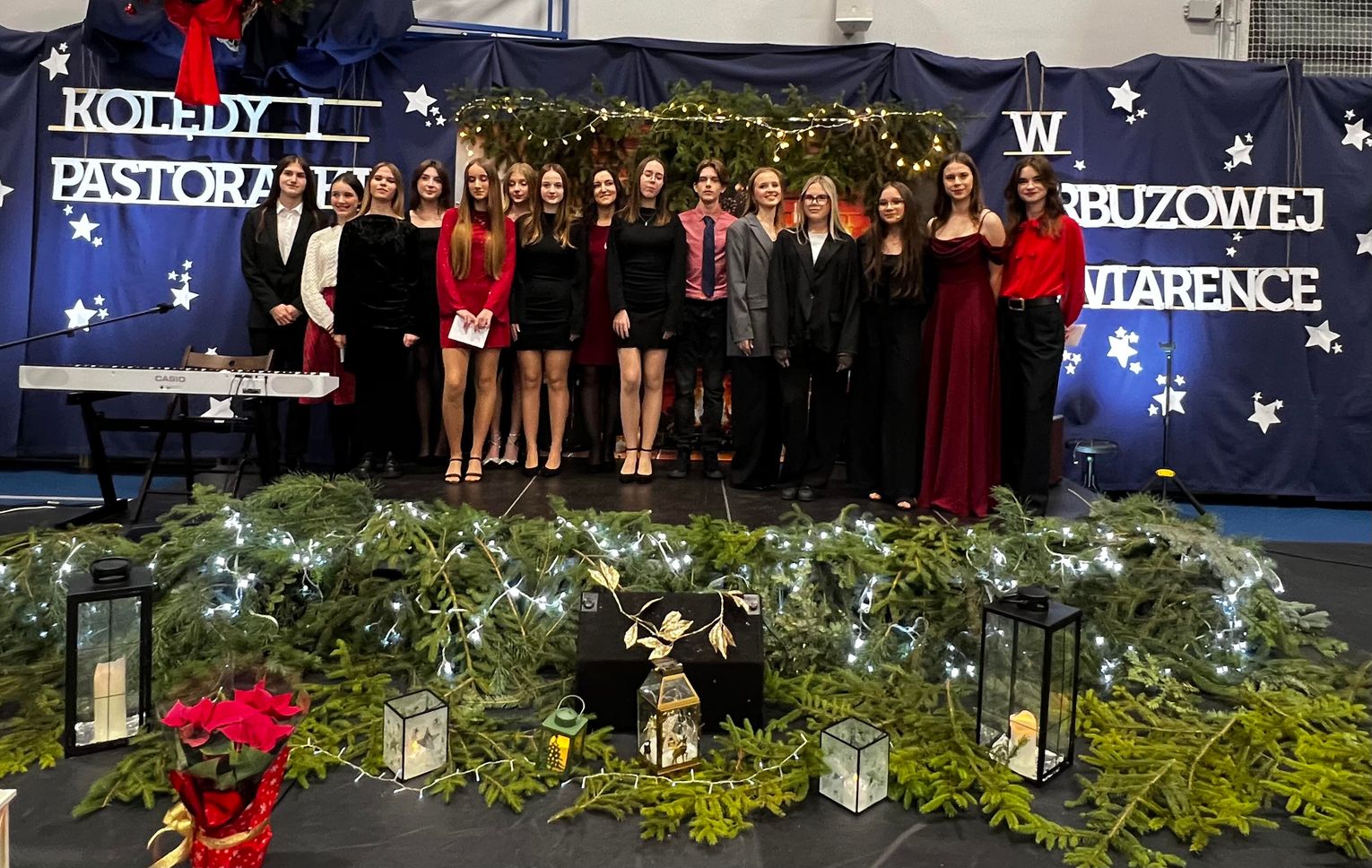 18 grudnia 2025 roku hala sportowa szkoły zamieniła się w miejsce wyjątkowe. Tego wieczoru uczniowie i pracownicy II LO zaprosili społeczność szkolną oraz gości na koncert „Kolędy i pastorałki w arbuzowej kawiarence” — spotkanie, które wprowadziło wszystkich w atmosferę Bożego Narodzenia: dnia szczególnego, od wieków uczącego wrażliwości na drugiego człowieka. Subtelne dźwięki, świąteczny blask aranżacji i wspólne przeżywanie muzyki sprawiły, że codzienność na chwilę ustąpiła miejsca temu, co najważniejsze.