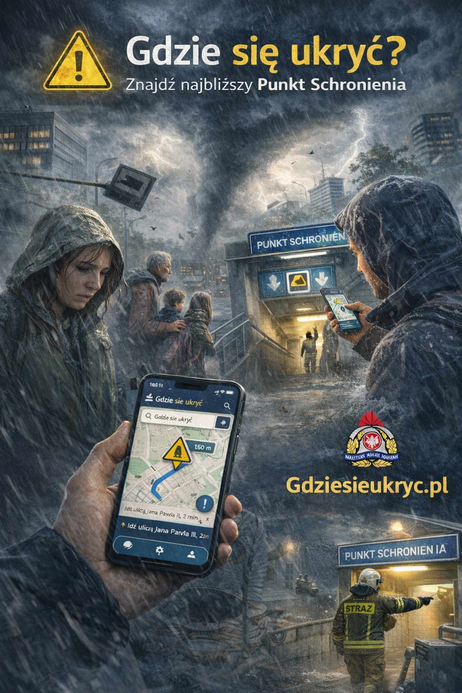 Gdy na telefonie pojawia się alert o gwałtownej burzy, silnym wietrze czy nagłym zagrożeniu, liczą się minuty. I właśnie na te najbardziej nerwowe chwile Państwowa Straż Pożarna przygotowała nowe, bezpłatne narzędzie: „Gdzie się ukryć”. To prosta w obsłudze strona gdziesieukryc.pl oraz aplikacja mobilna, która ma jedno zadanie – szybko wskazać najbliższy Punkt Schronienia i poprowadzić do niego użytkownika.