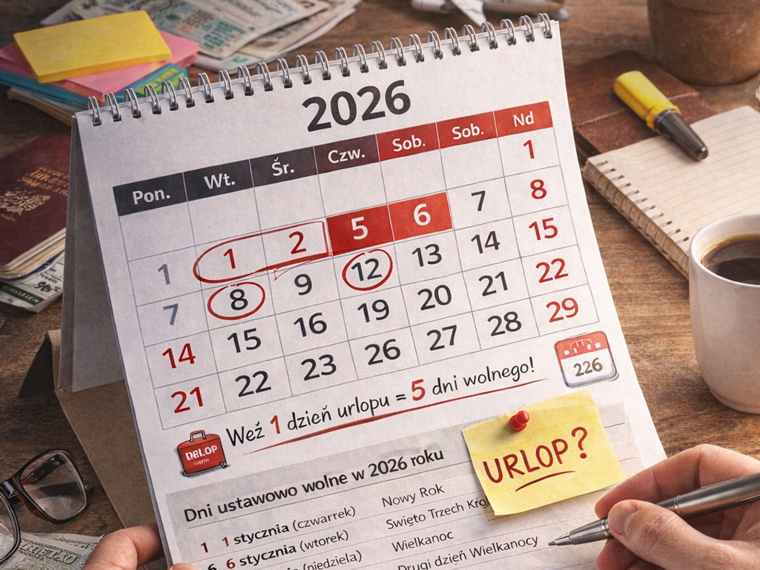 Pełna lista dni ustawowo wolnych w 2026 roku