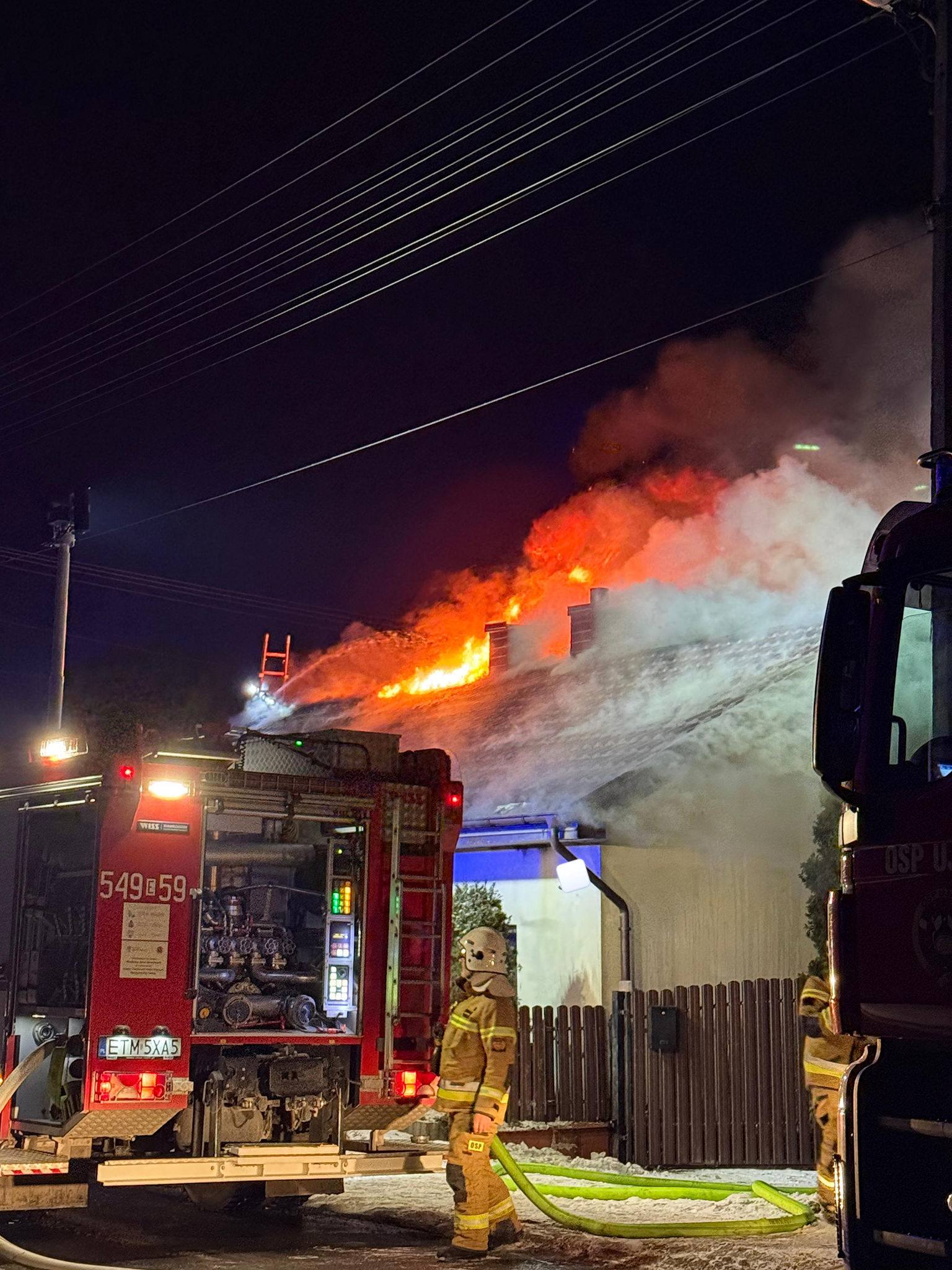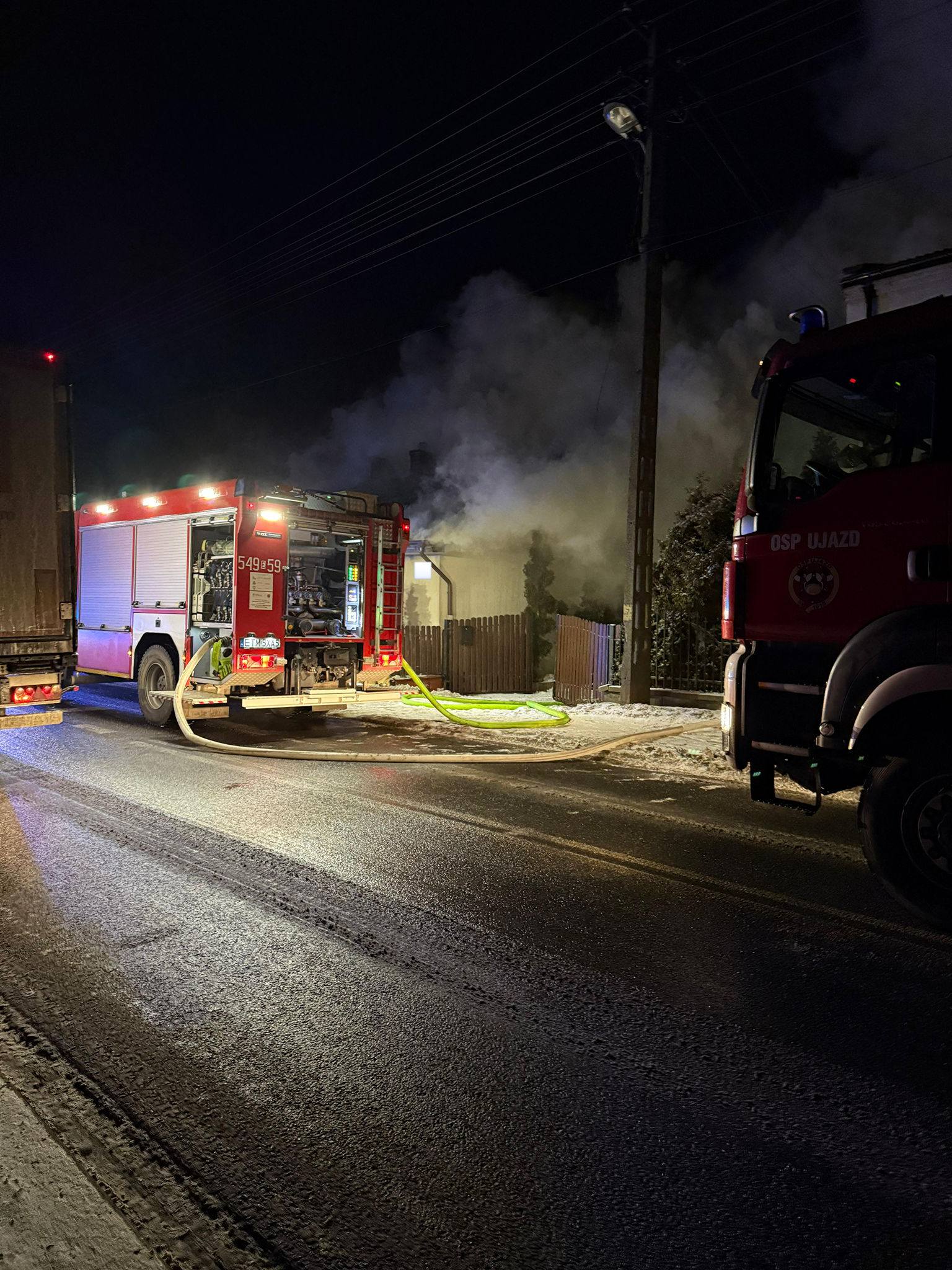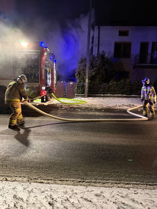 W czwartek nad ranem strażacy z OSP Ujazd zostali wezwani do groźnego pożaru budynku mieszkalnego. Zgłoszenie wpłynęło około godziny 4.00, a na miejsce zadysponowano dwa zastępy ochotników. Po dojeździe ratowników sytuacja była już bardzo poważna – jak relacjonują druhowie, cały obiekt stał w ogniu.