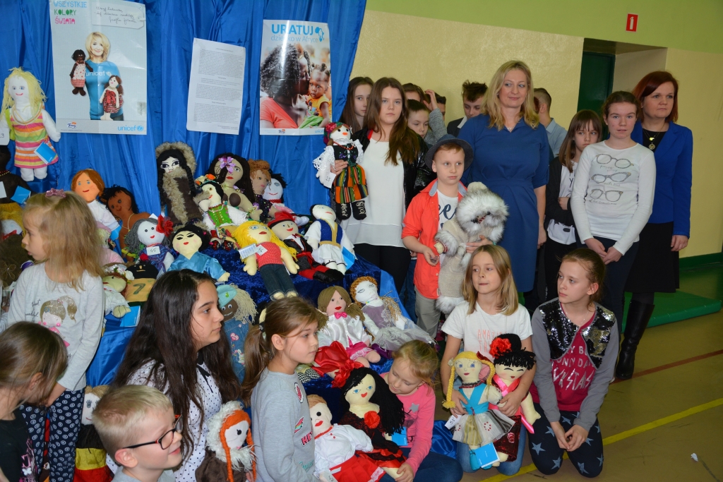 Uczniowie wszystkich klas mieli za zadanie przygotować specjalną, charytatywną szmacianą laleczkę UNICEF. Sami zdecydowali, jakie nadadzą jej imię , kolor skóry, jaki dobiorą jej strój.