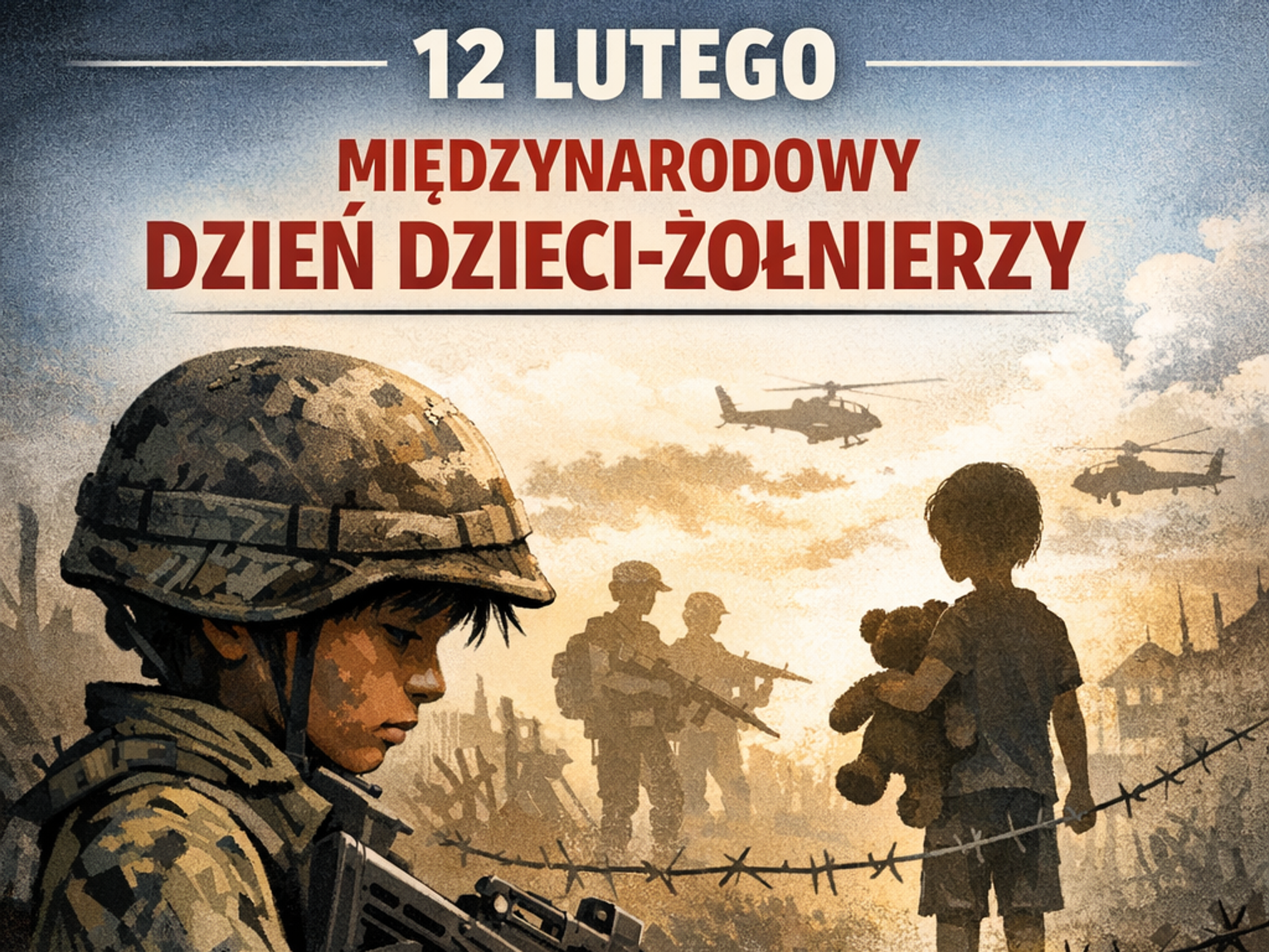 Międzynarodowy Dzień Dzieci-Żołnierzy to przypomnienie, że konflikt zbrojny odbiera dzieciństwo, edukację i poczucie bezpieczeństwa. Nawet jedna historia dziecka-żołnierza powinna być dla nas wszystkich wołaniem o zmianę: dzieci powinny nosić plecaki szkolne, bawić się z rówieśnikami i śnić o przyszłości – nie nosić mundurów i wiązać buty wojskowe.